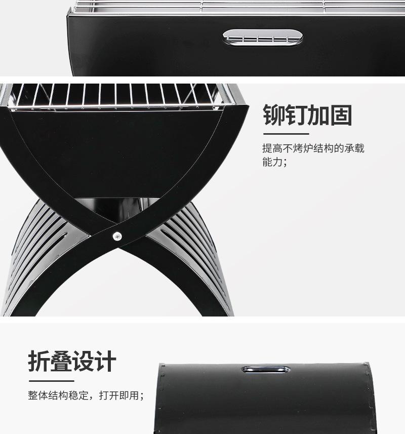 Parrilla vertical plegable de acero inoxidable para picnic al aire libre, venta al por mayor de fábrica, para uso doméstico, de carbón y acero inoxidable.