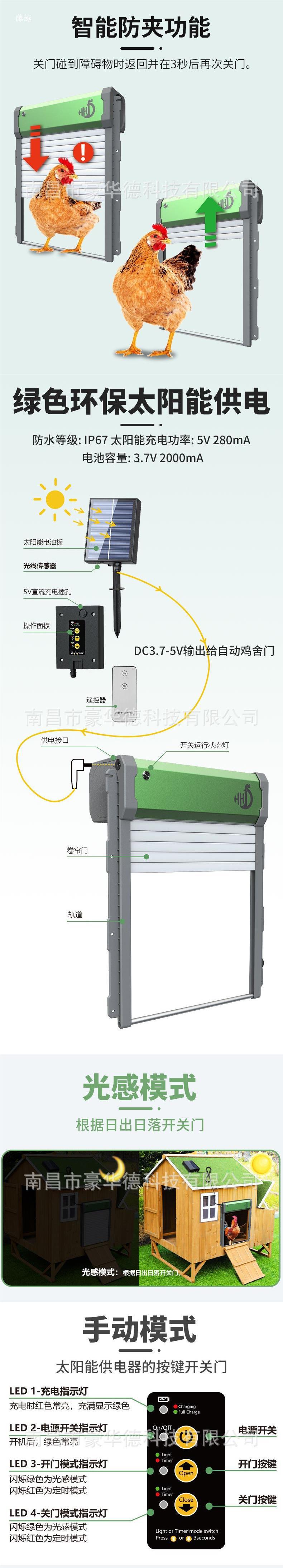 Puerta automática para gallinero con sensor de luz, control remoto, manual y temporizador. Puerta enrollable para gallinero transfronterizo de América del Norte.