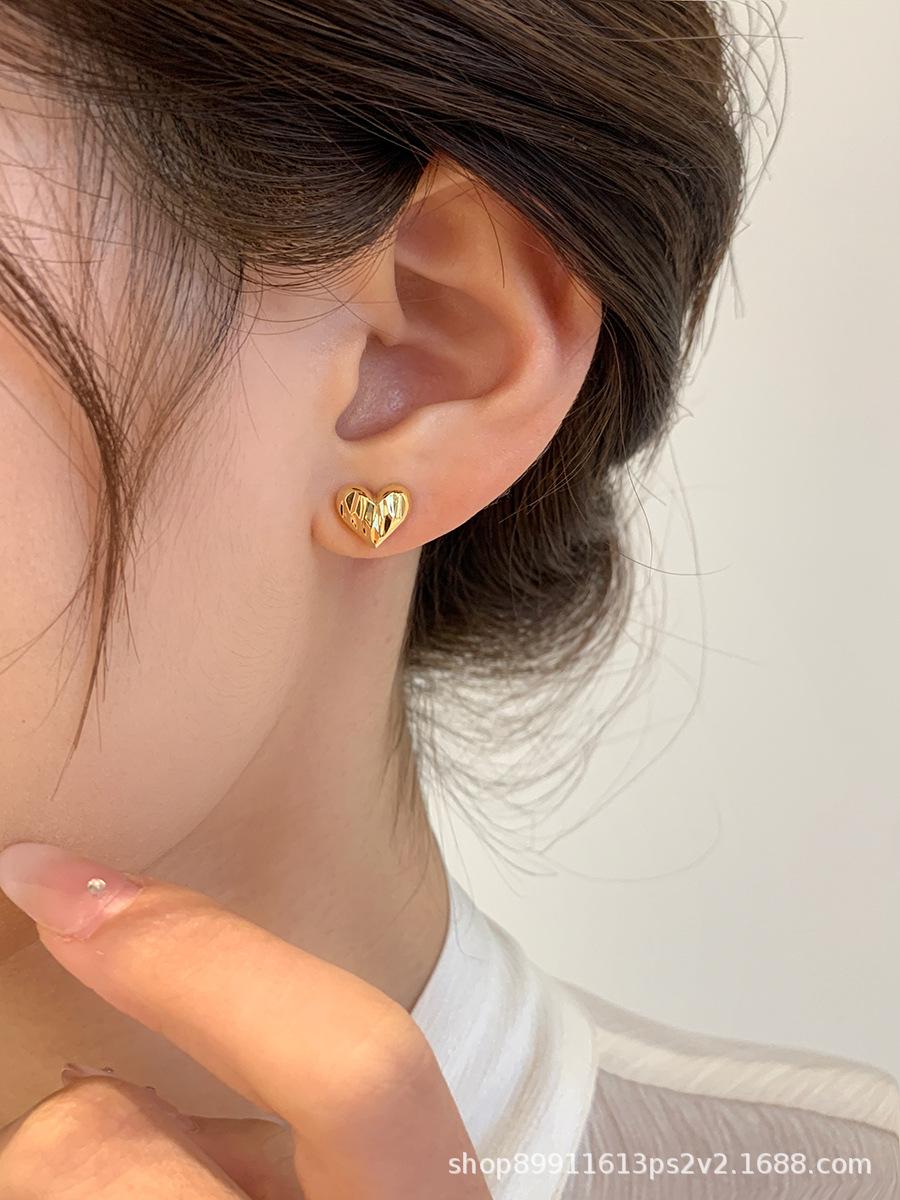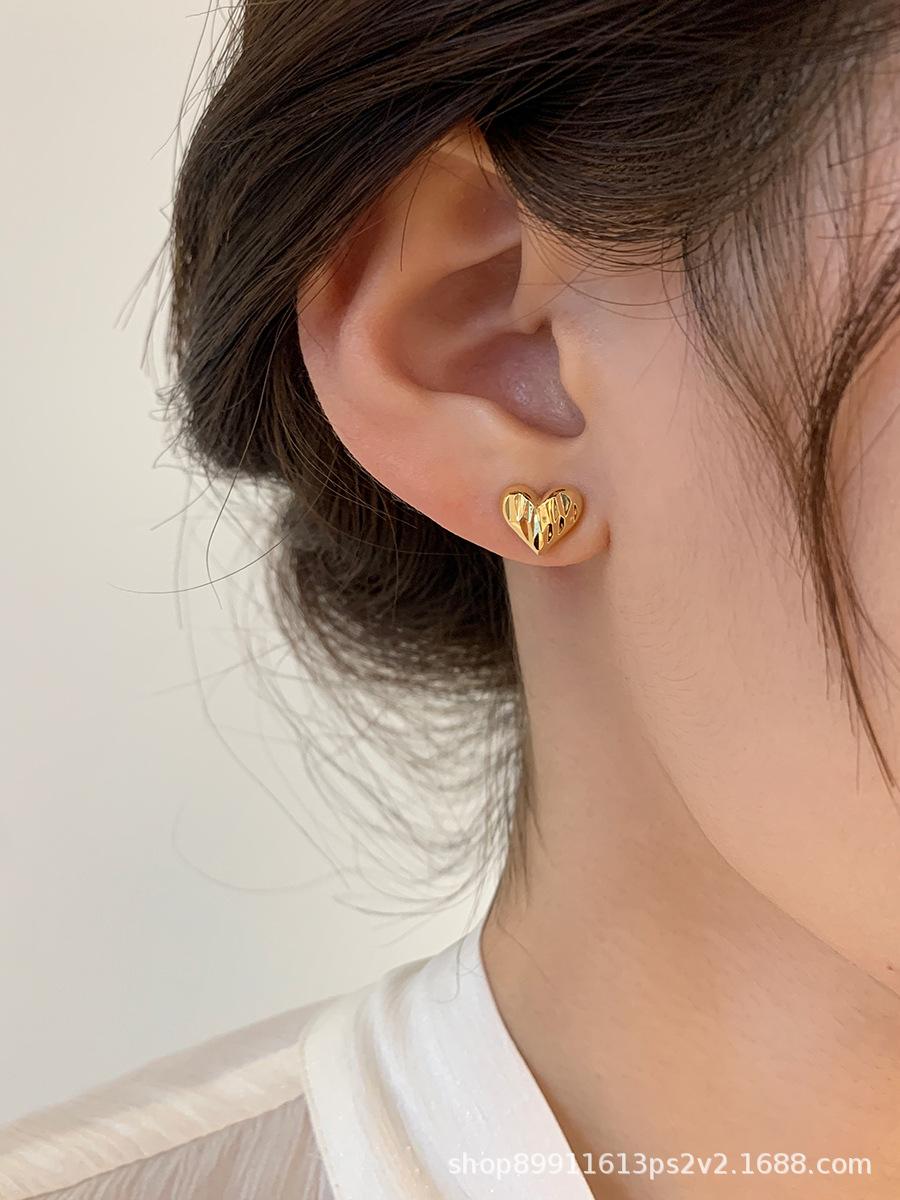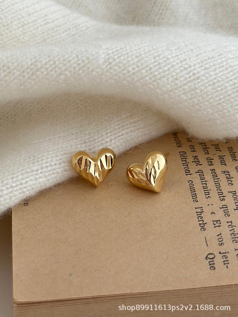 Pendientes de Corazón Dorado Super Hada Simples de Lujo Ligero para Mujer Pendientes de Gama Alta Nuevo Estilo Popular de Celebridad de Internet Temperamento Suave Versátil