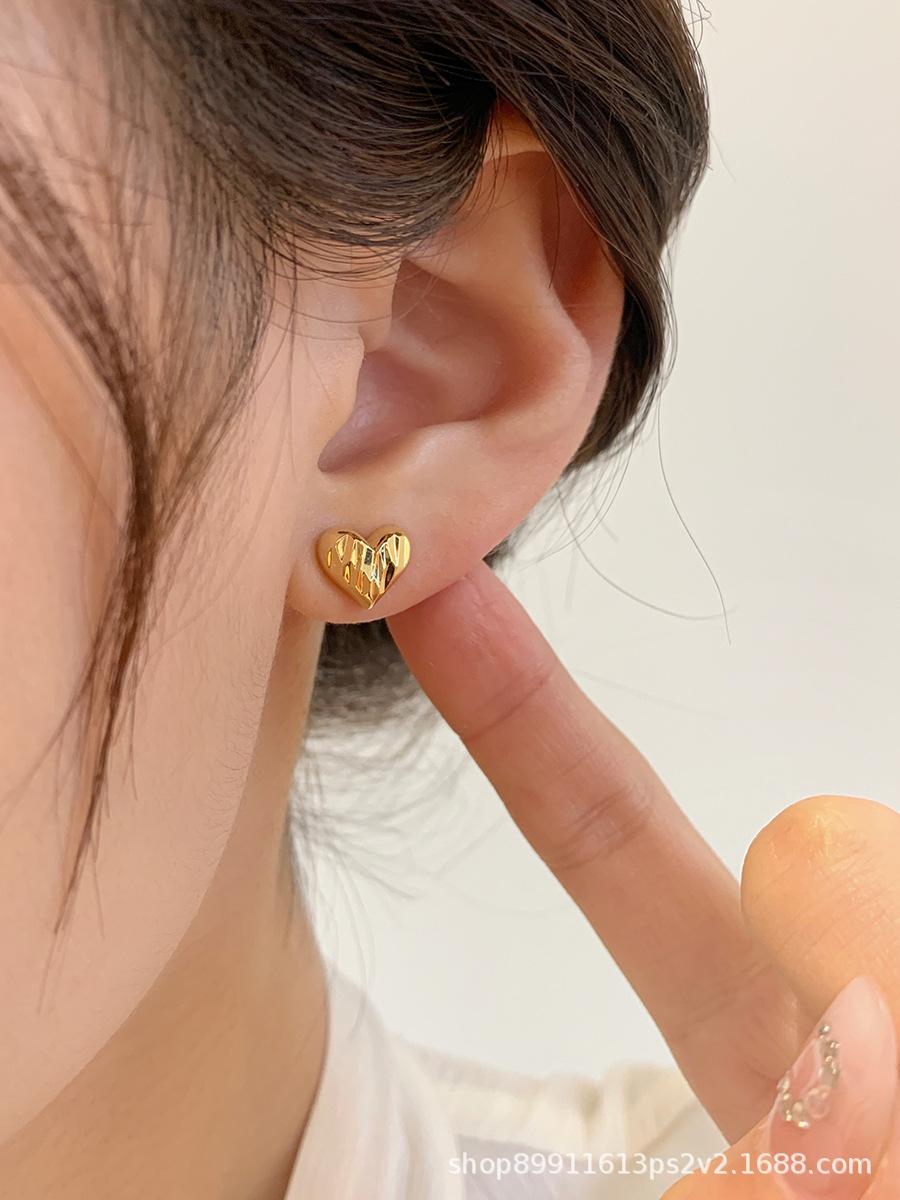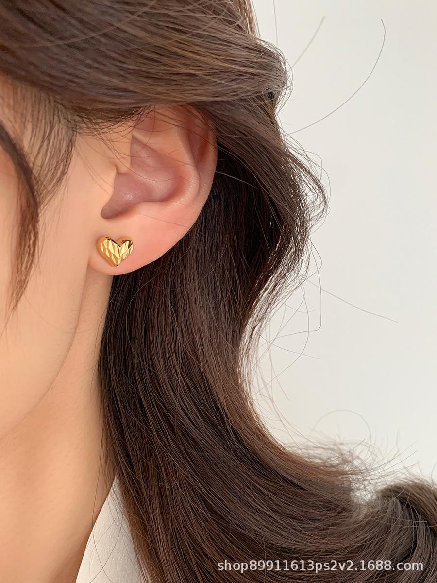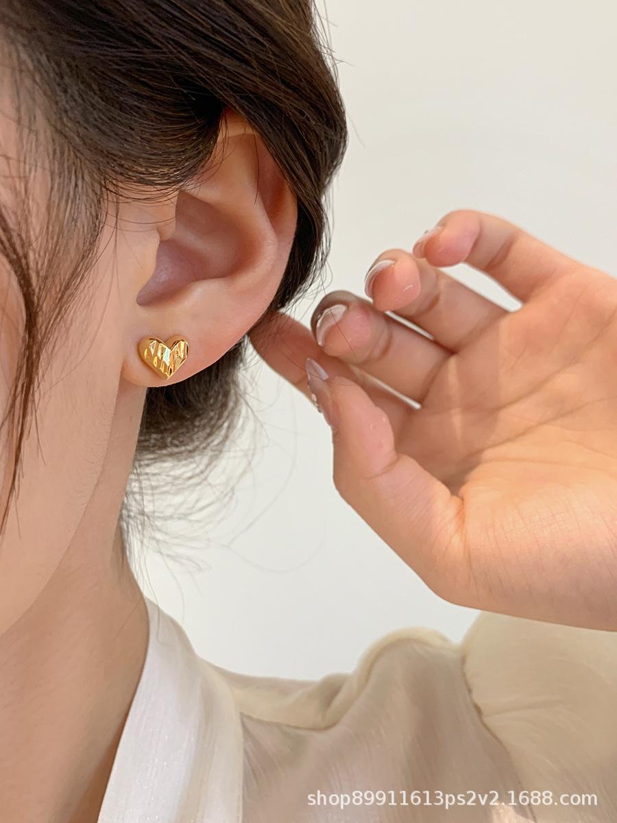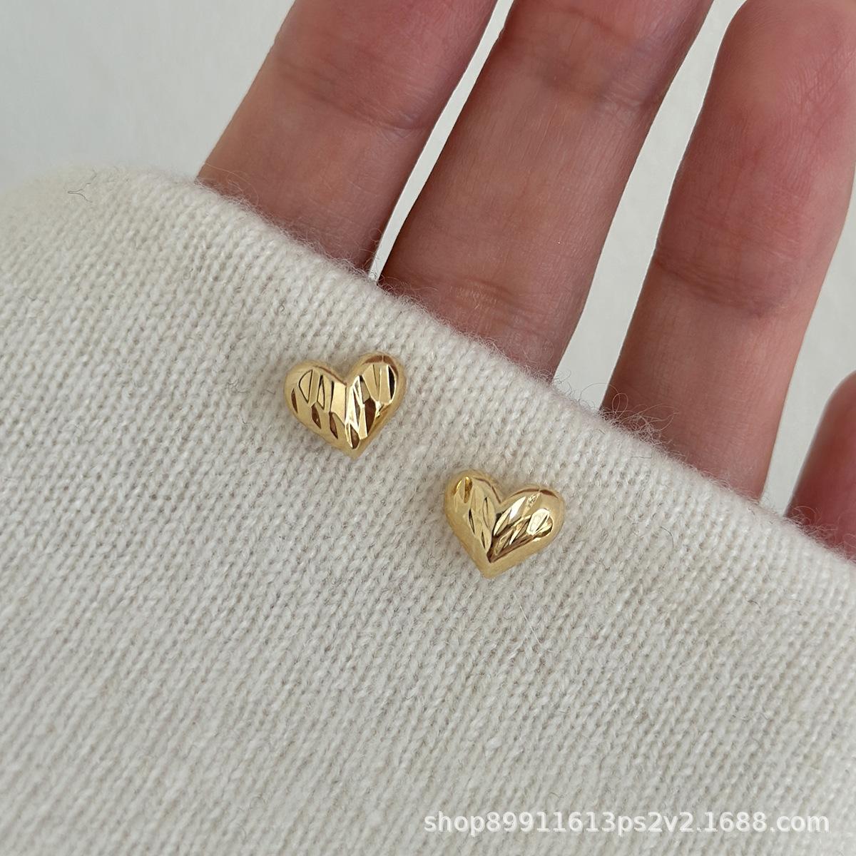 Pendientes de Corazón Dorado Super Hada Simples de Lujo Ligero para Mujer Pendientes de Gama Alta Nuevo Estilo Popular de Celebridad de Internet Temperamento Suave Versátil