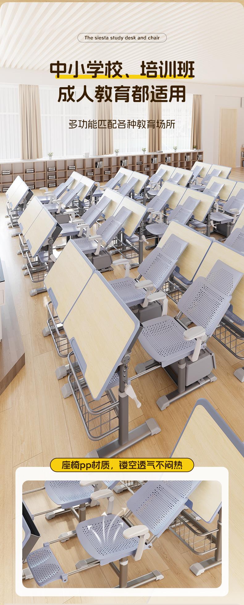 Escritorios y Sillas para la Hora del Almuerzo para Estudiantes de Primaria y Secundaria, Mesa de Estudio Reclinable para Niños, Juego de Escritorio para Escritura para Clases de Capacitación y Tutoría Escolar
