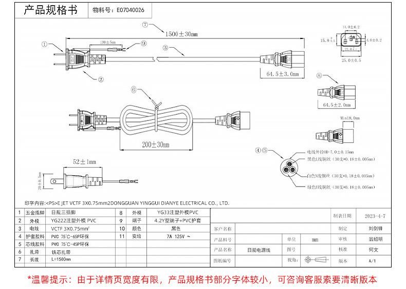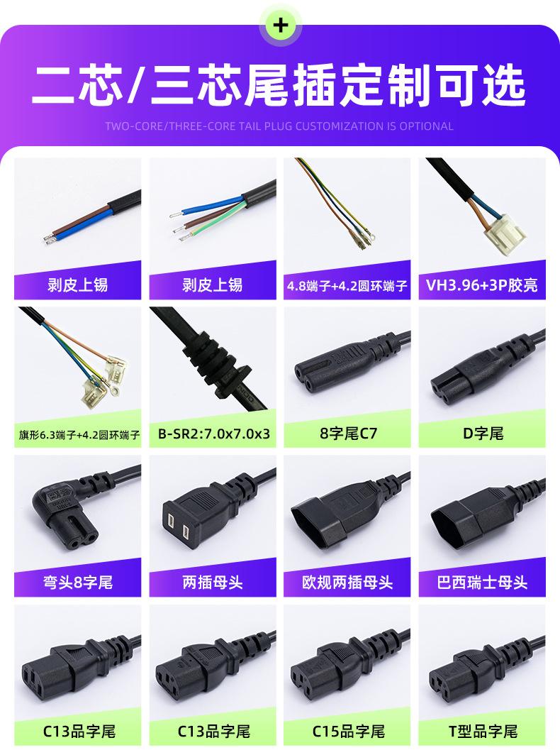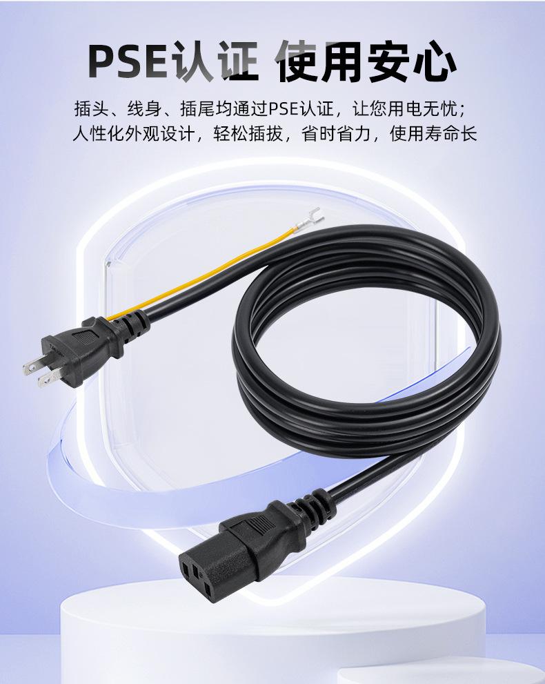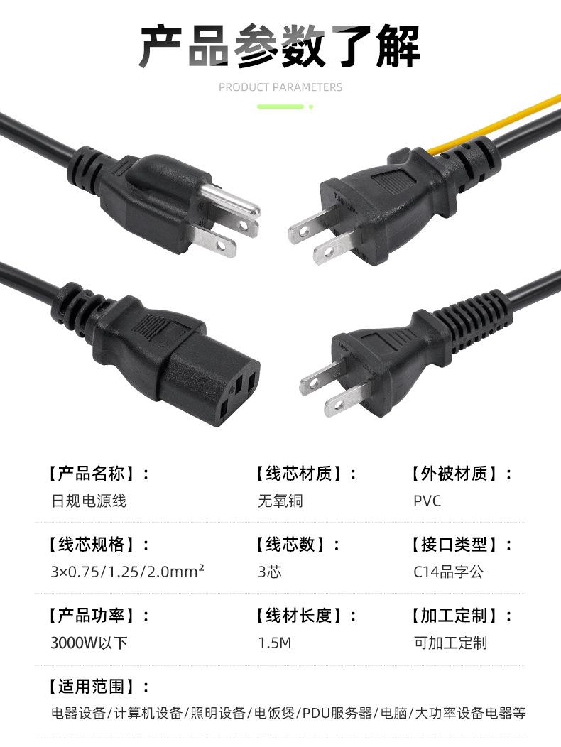 Cable de conexión a tierra de dos clavijas de estilo japonés C13, conector PSE de dos núcleos con clavija de cable de tierra, conector de cola de flor de ciruelo estándar japonés 7Ajet
