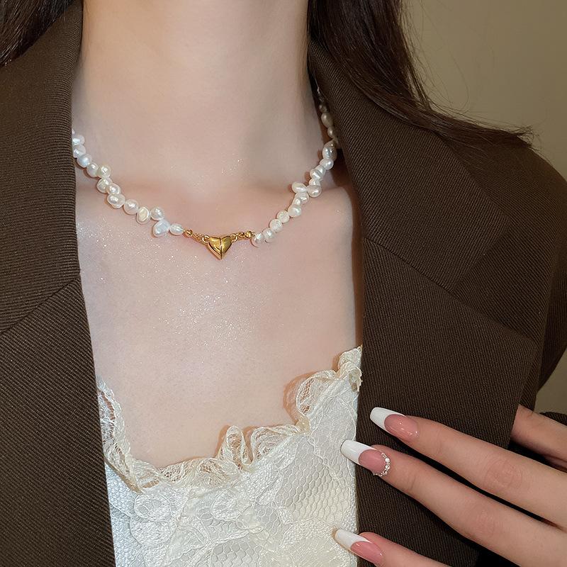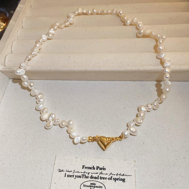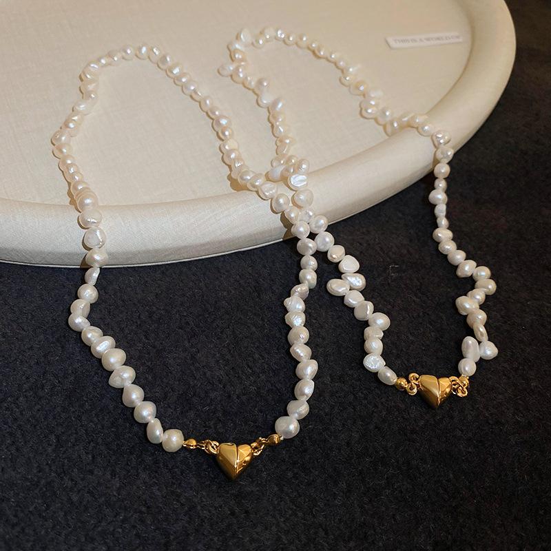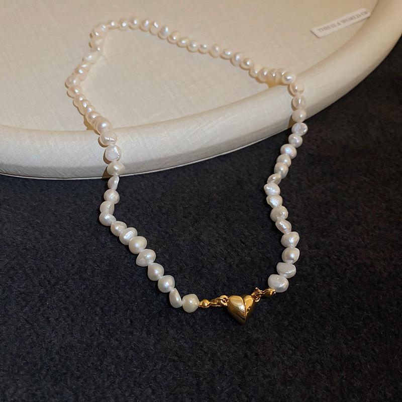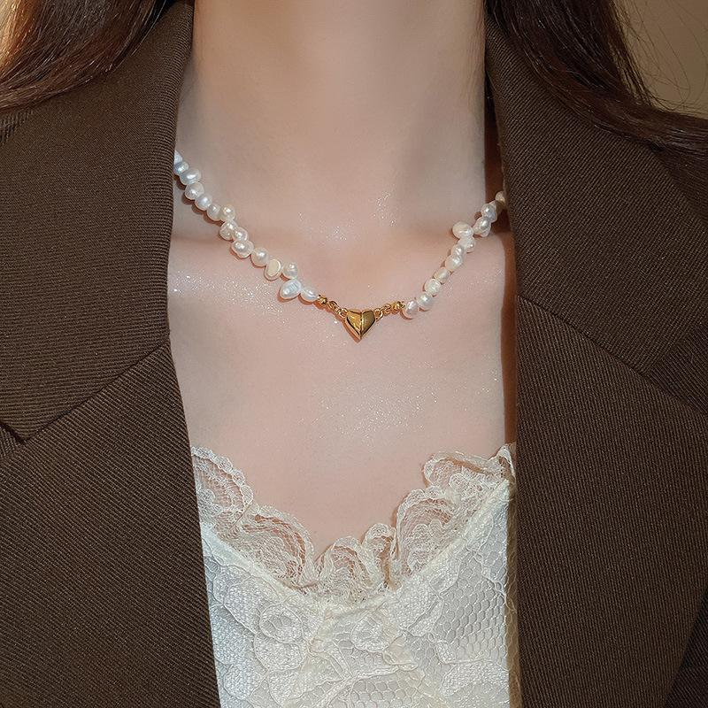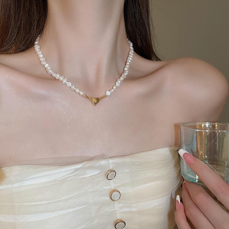 Collar magnético con cuentas de perlas de agua dulce de oro grueso de 18 quilates, diseño de cadena de clavícula, personalidad, joyería de alta gama para mujeres