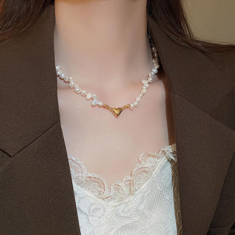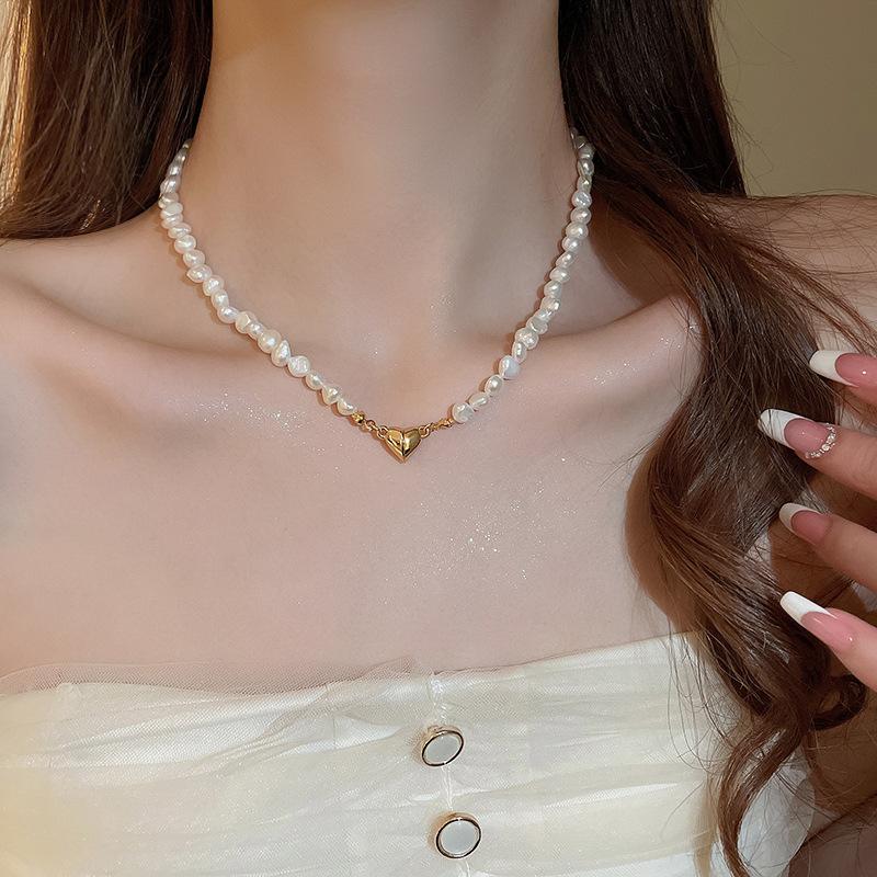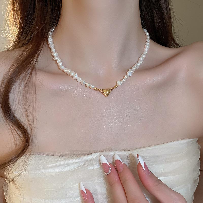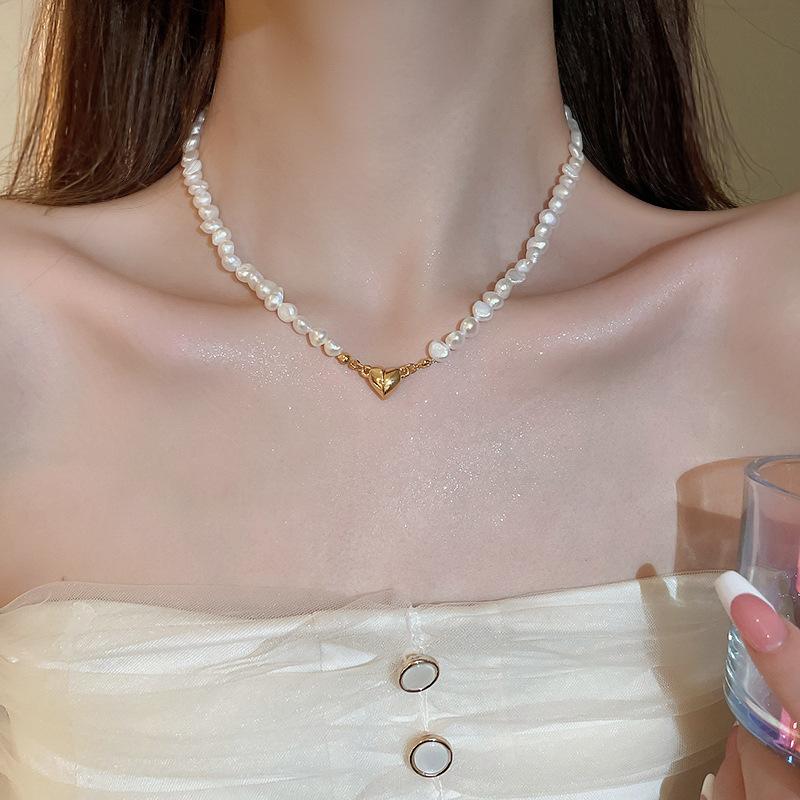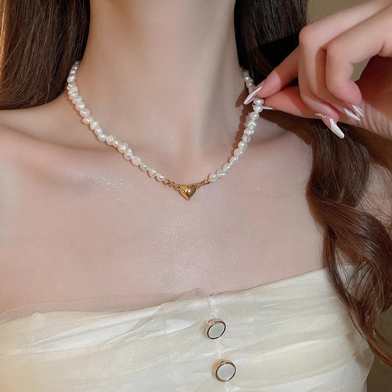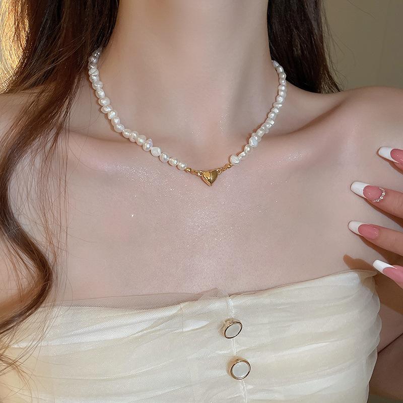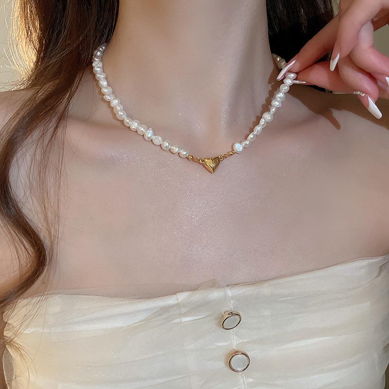 Collar magnético con cuentas de perlas de agua dulce de oro grueso de 18 quilates, diseño de cadena de clavícula, personalidad, joyería de alta gama para mujeres