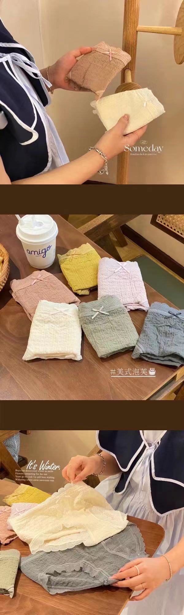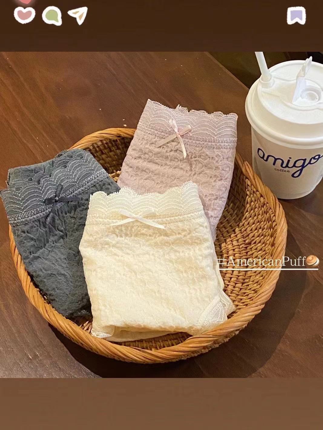 Ropa Interior Puff de Nuevo Estilo Americano para Mujer Sin Costuras Sexy Suave Cera Cómoda Encaje Cintura Media Calzones para Dama