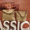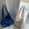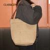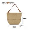 | Bolsa de almacenamiento de cosméticos de lona de algodón, ecológica, con veta de madera auténtica, color block, con cremallera, bolsa de viaje con forma de concha. |