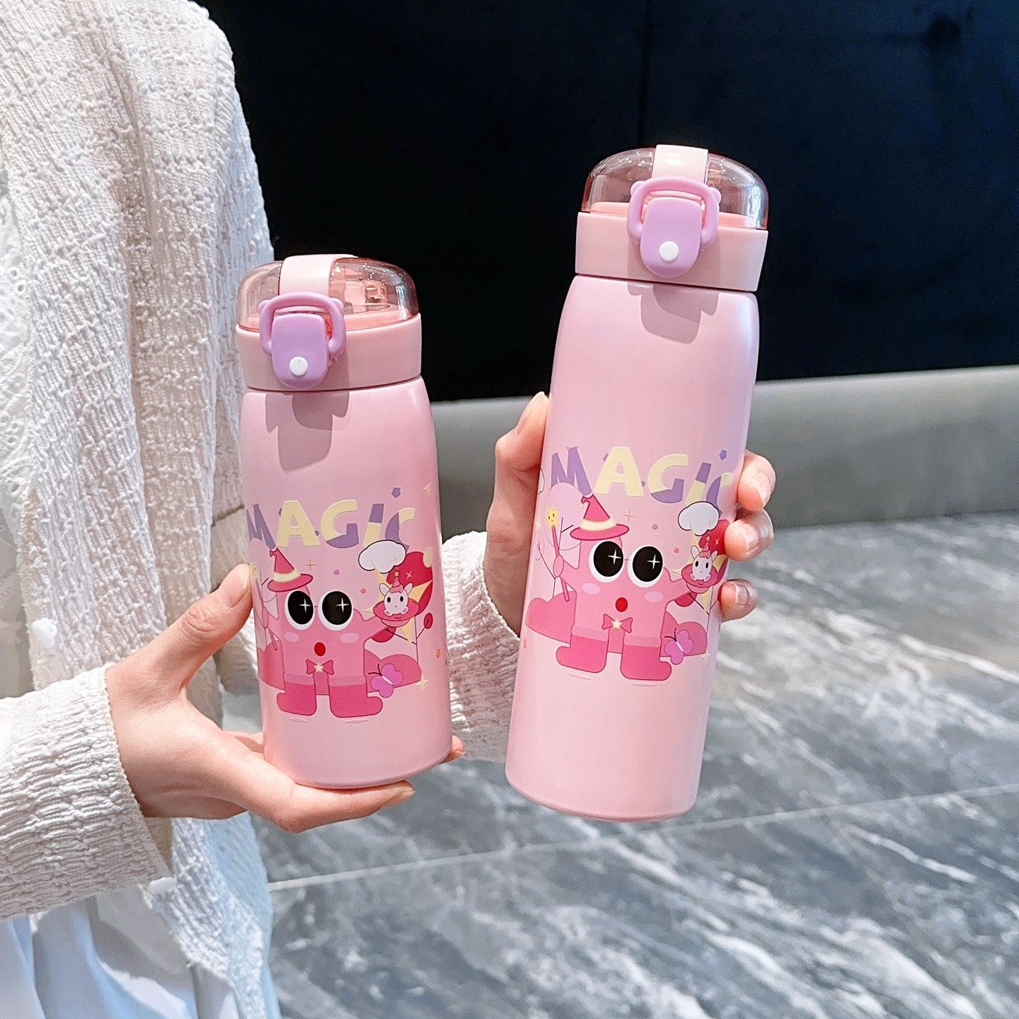 Lindo Vaso de Agua Pop-Up de Dibujos Animados con Pajita, Portátil, Regalo Creativo al Por Mayor, Vaso Termo para Niños y Estudiantes