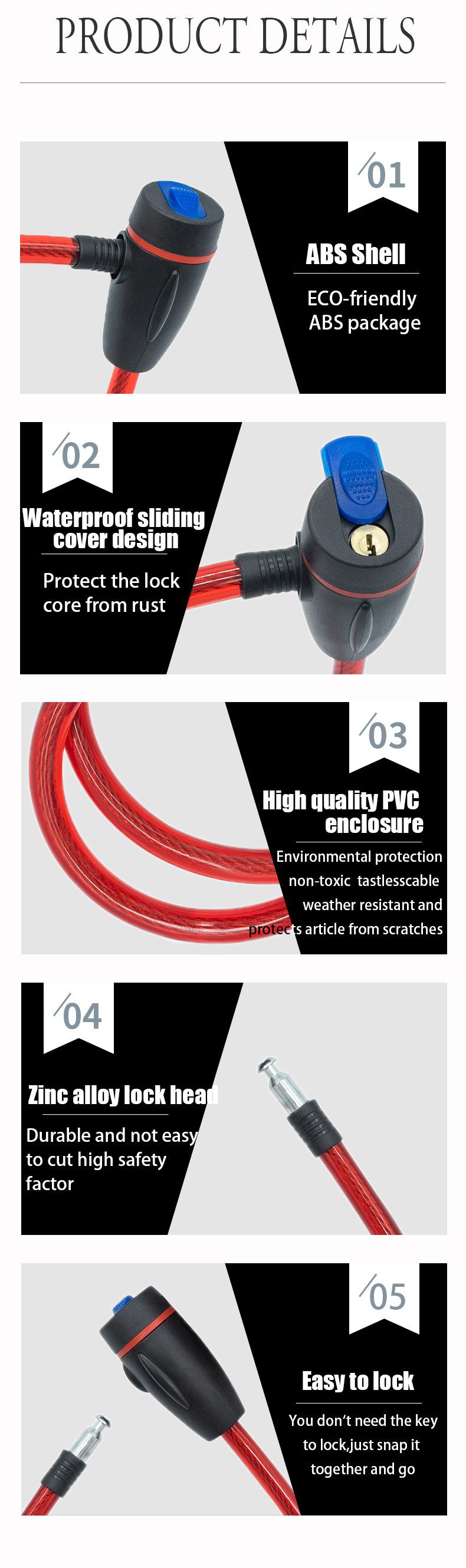 Candado de Llave Candado para Bicicleta Venta al Mayoreo de Fábrica Candado de Cable Tipo Anillo para Bicicleta para Exterior Bicicleta de Carretera Antirrobo