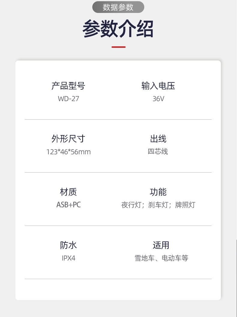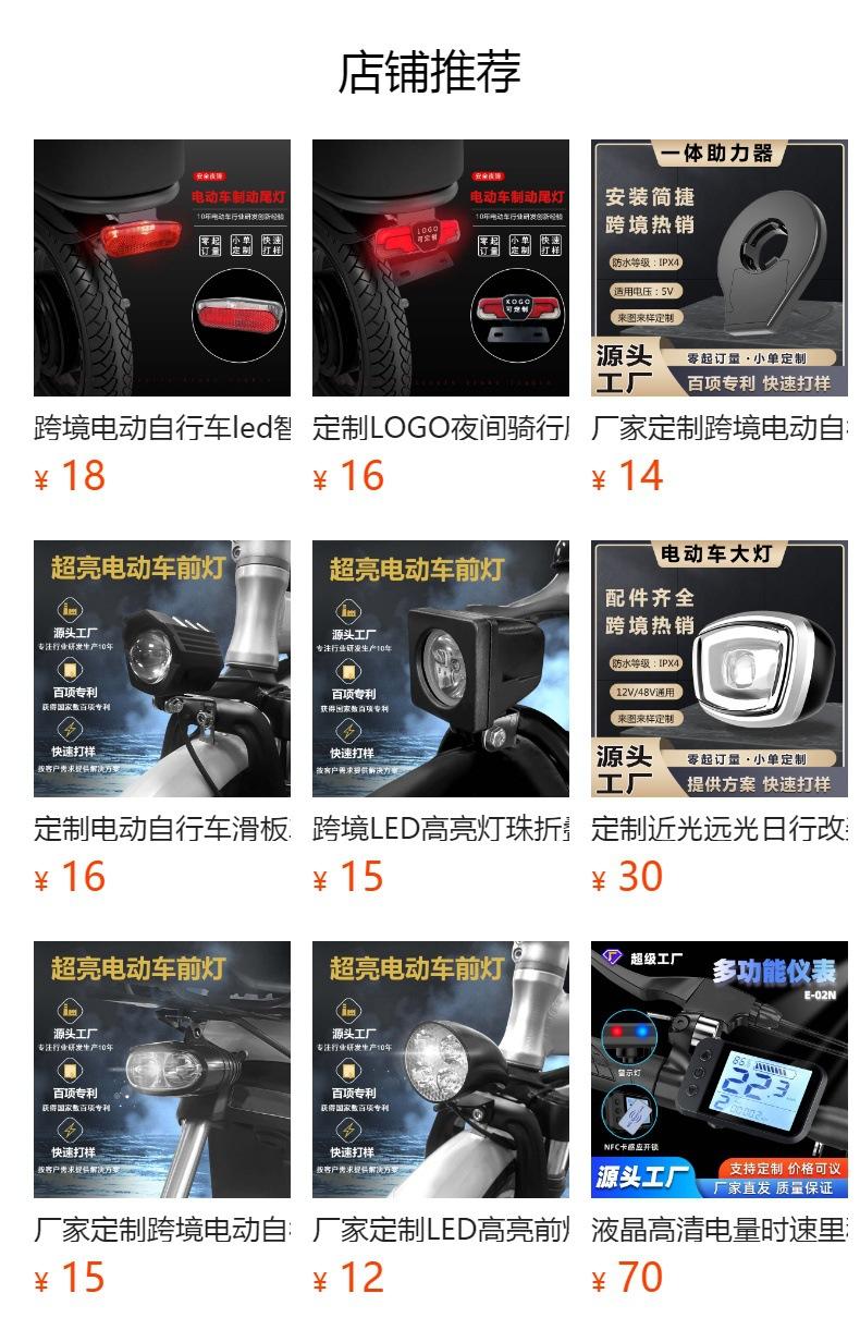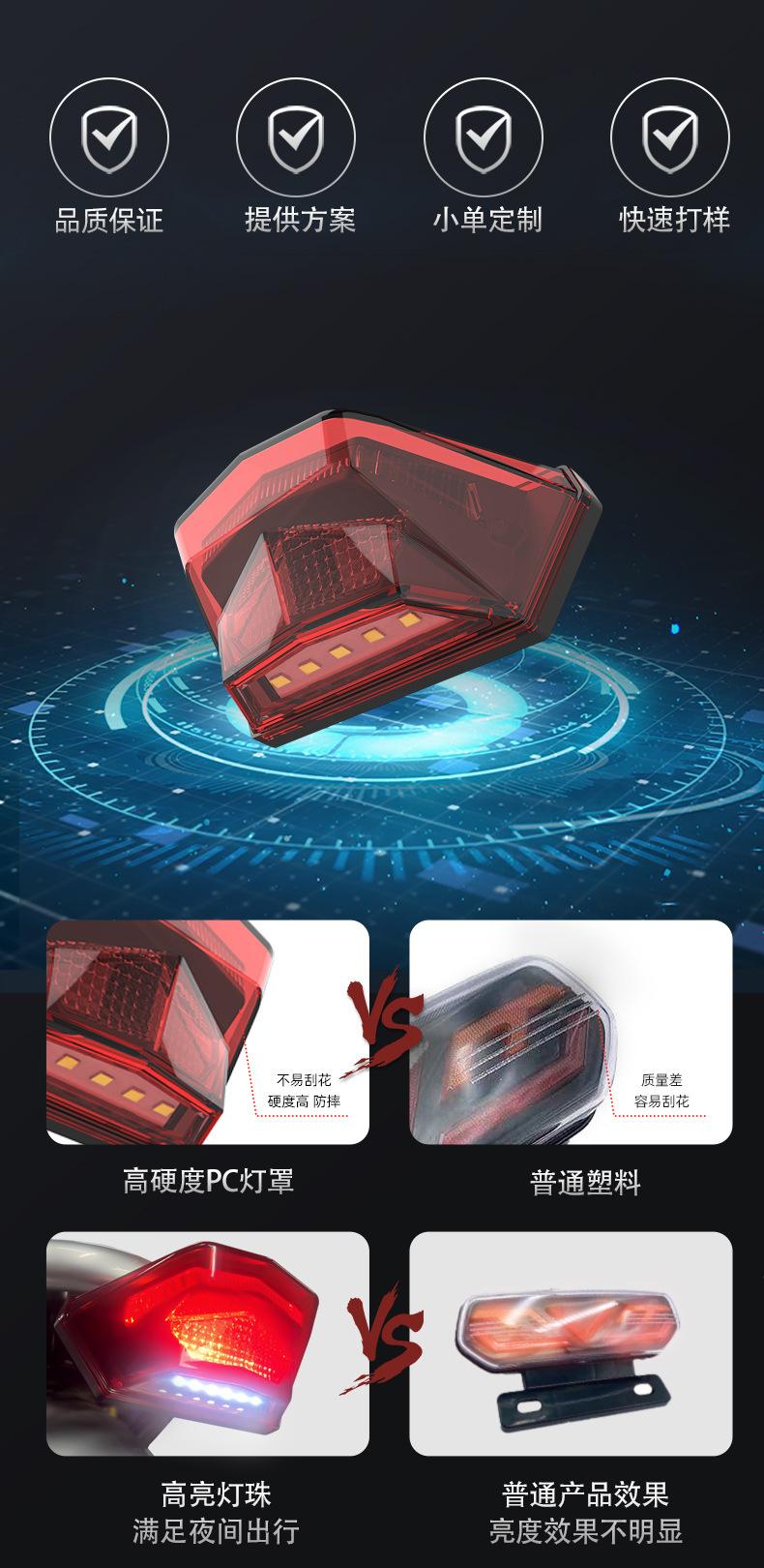 Fabricante Personalizado Impermeable Led Bicicleta Eléctrica Noche Freno Freno Luz Trasera 36V Luz de Advertencia Luz de Matrícula Accesorios