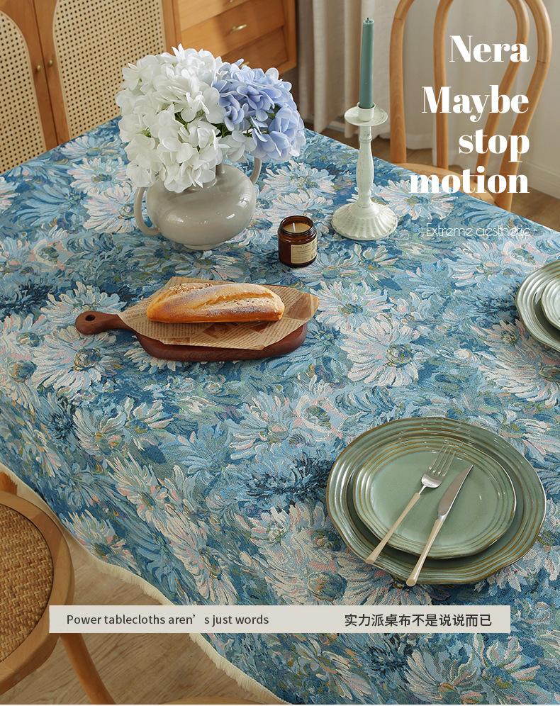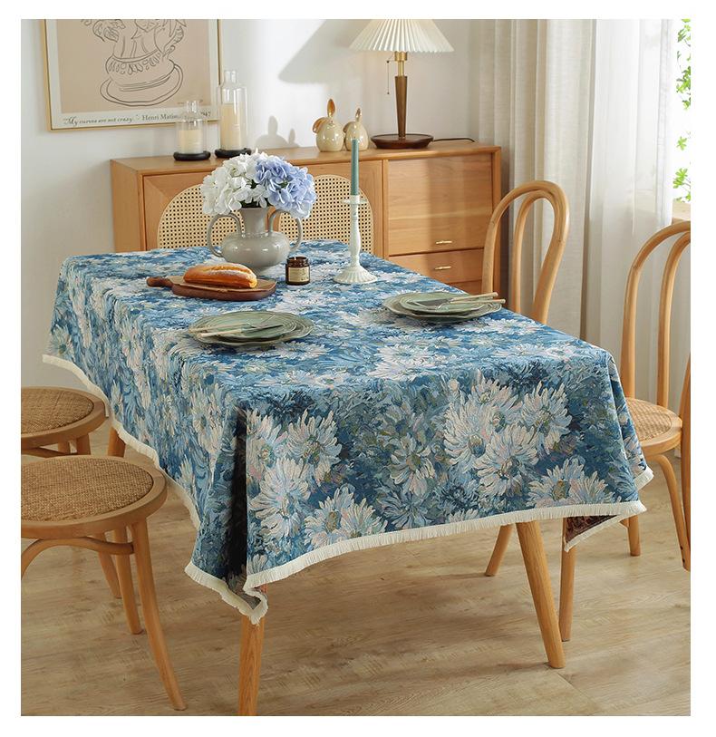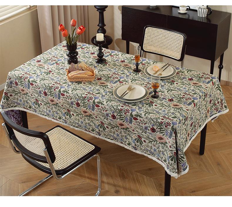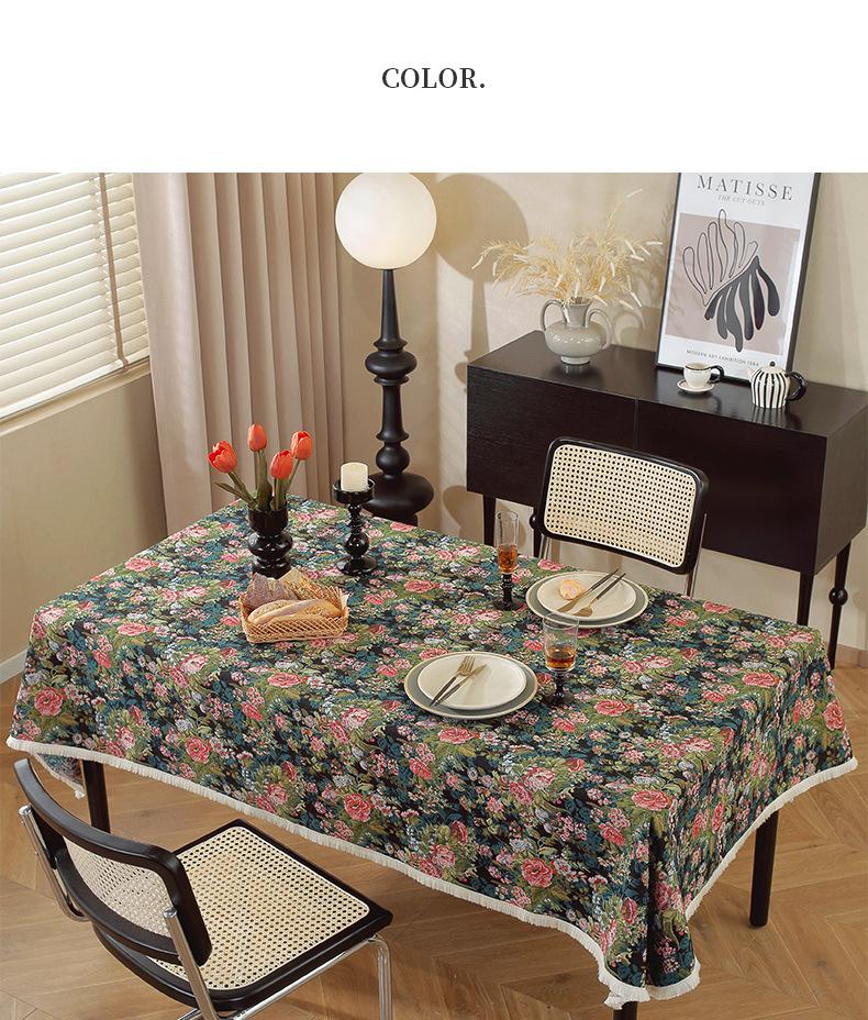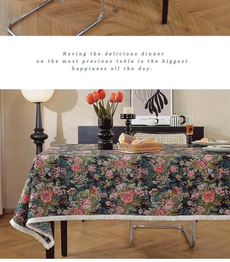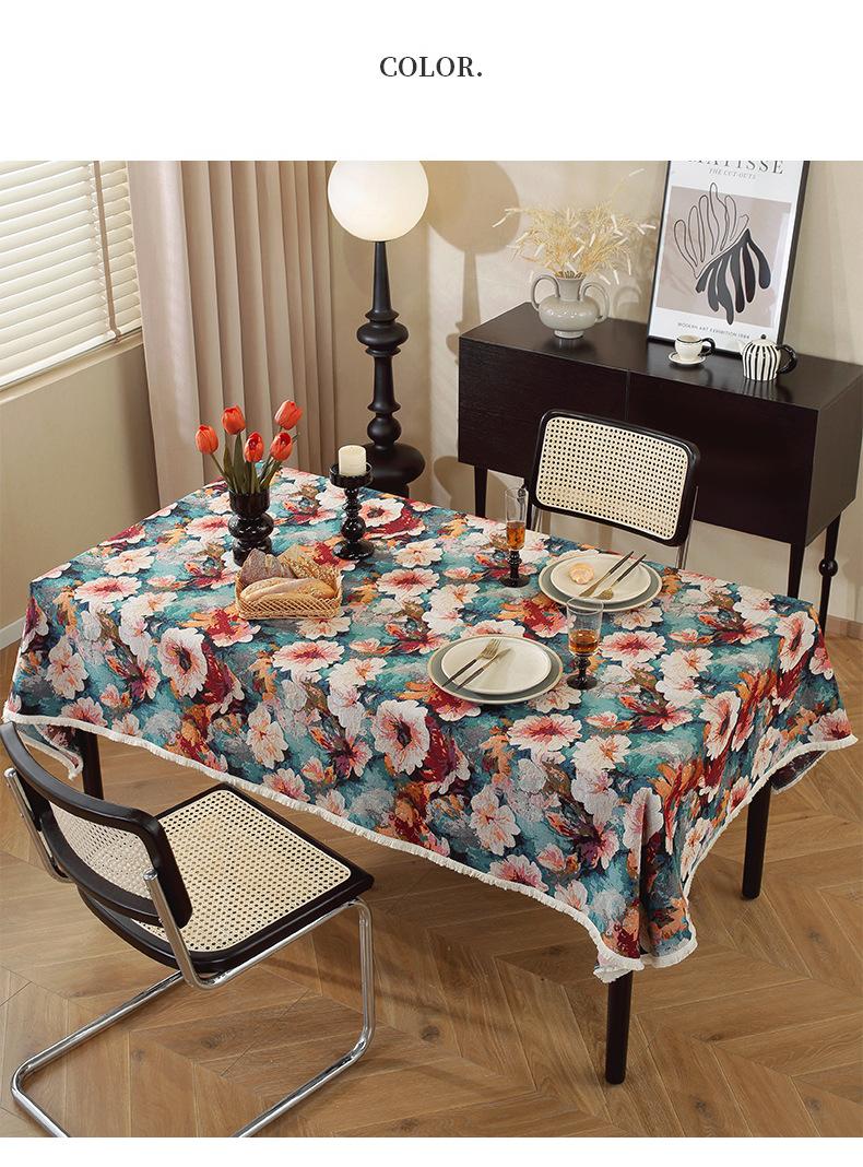 Mantel estilo pintura al óleo retro americano, de algodón y lino, jacquard, grueso, estilo pastoral, floral, para mesa de té, venta al por mayor