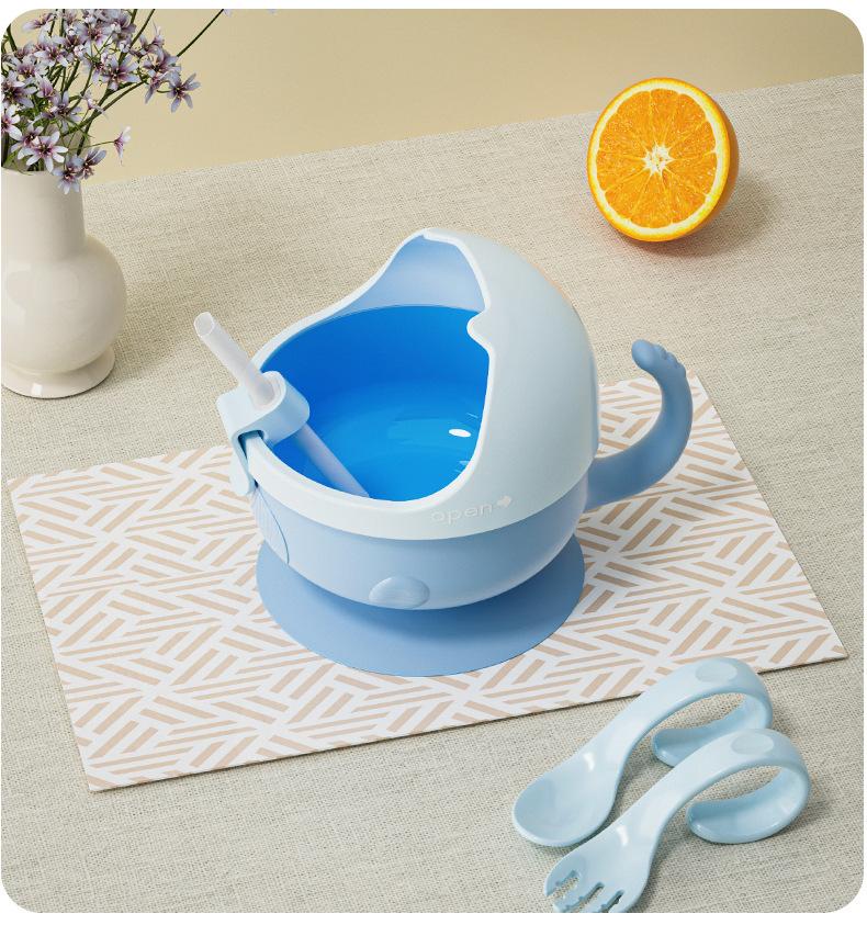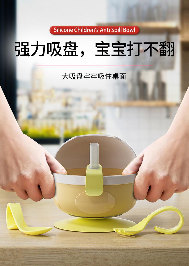 Tazón antisalpicaduras para niños con ventosa, cuchara, tenedor, juego de vajilla, dibujos animados, creativo, desmontable, aprendizaje para bebés, comer, suplemento alimenticio, tazón