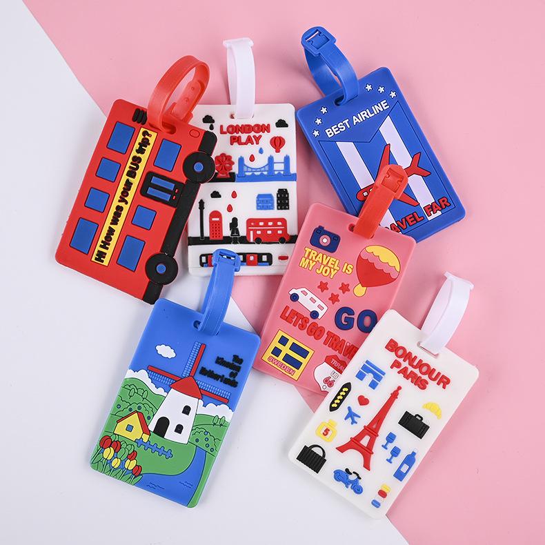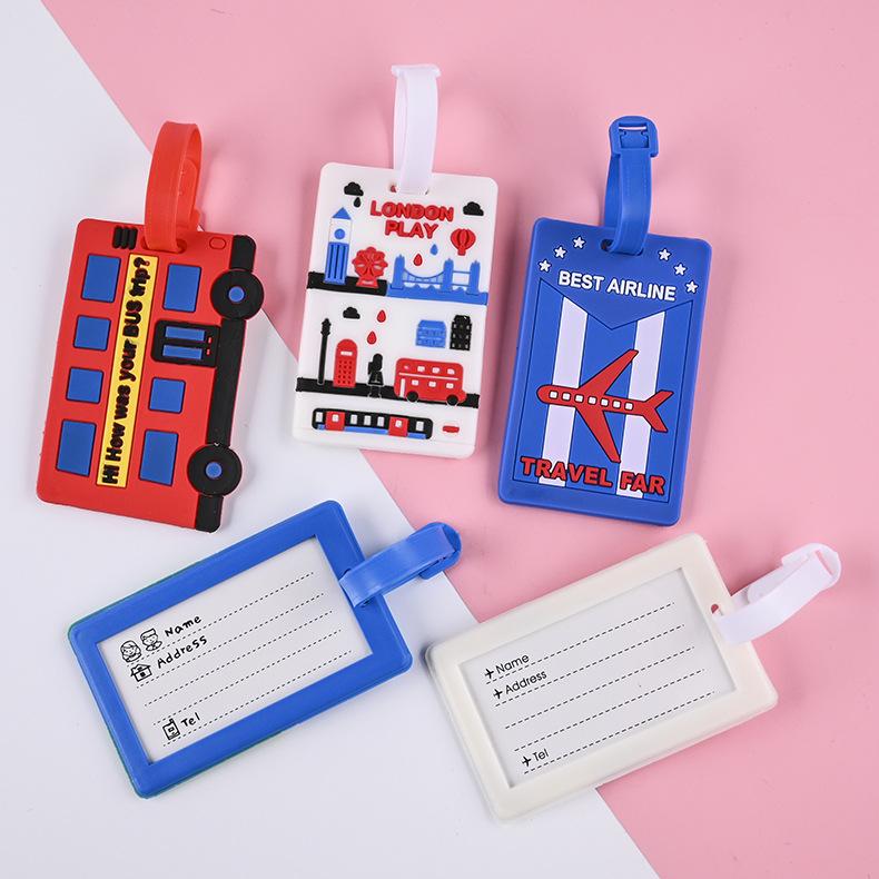 Etiqueta de equipaje de goma suave de PVC con dibujos animados, venta al por mayor, etiqueta de equipaje de avión con dibujos animados creativos, tarjeta de embarque de equipaje de silicona
