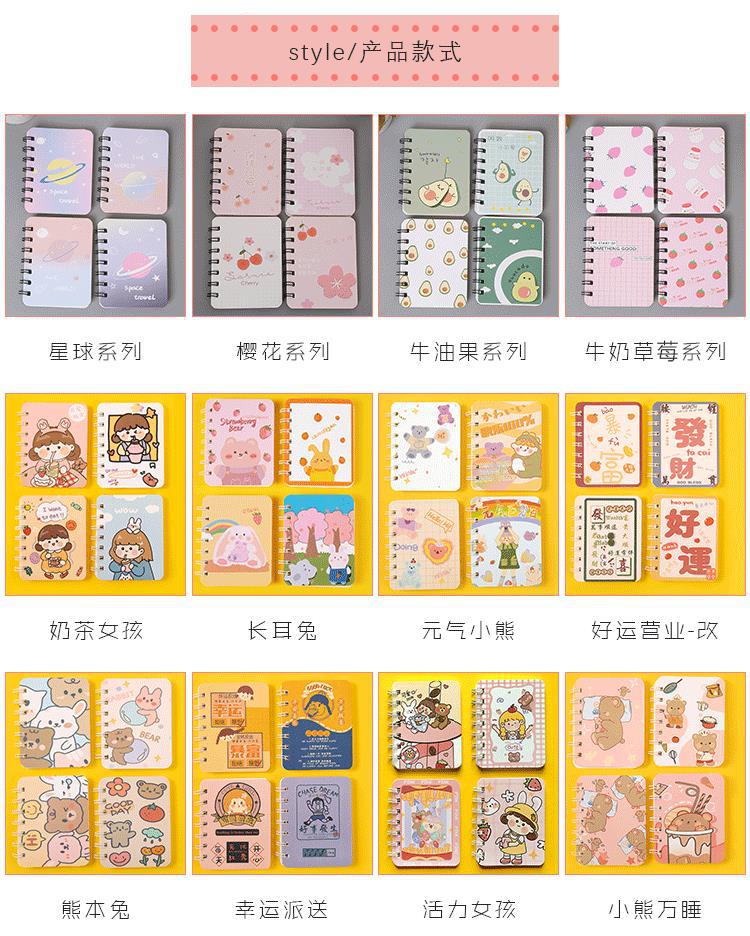 Cuaderno de espiral A7 con dibujos animados, minicuaderno portátil, pequeño, para estudiantes, venta al por mayor