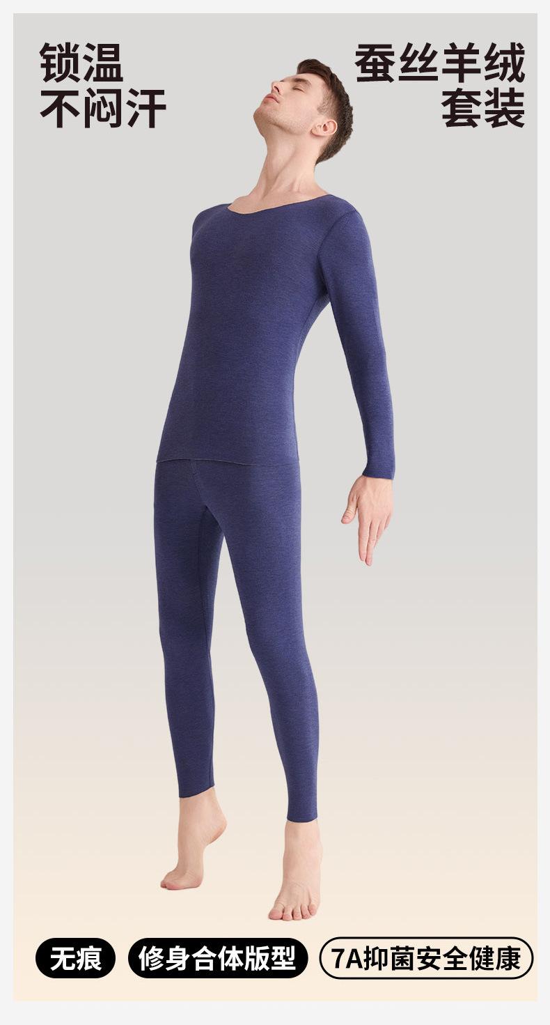 Compra Conjunto de Ropa Interior Térmica Antibacteriana 7A para Hombre, Seda Cachemira Engrosada Sin Costuras Calentamiento Tops y Pantalones Térmicos para Hombre al por mayor en Joom.pro