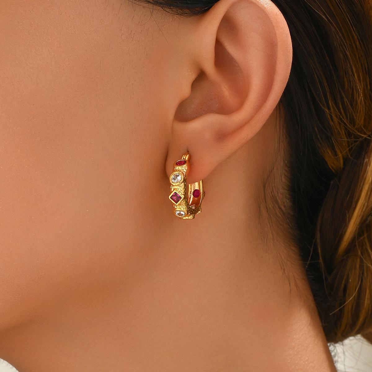 Pendientes geométricos de estilo cortesano para mujer, de estilo europeo y americano, con incrustaciones de diamantes de nicho, ligeros, de lujo, de diseño de alta gama, pendientes que combinan con todo.