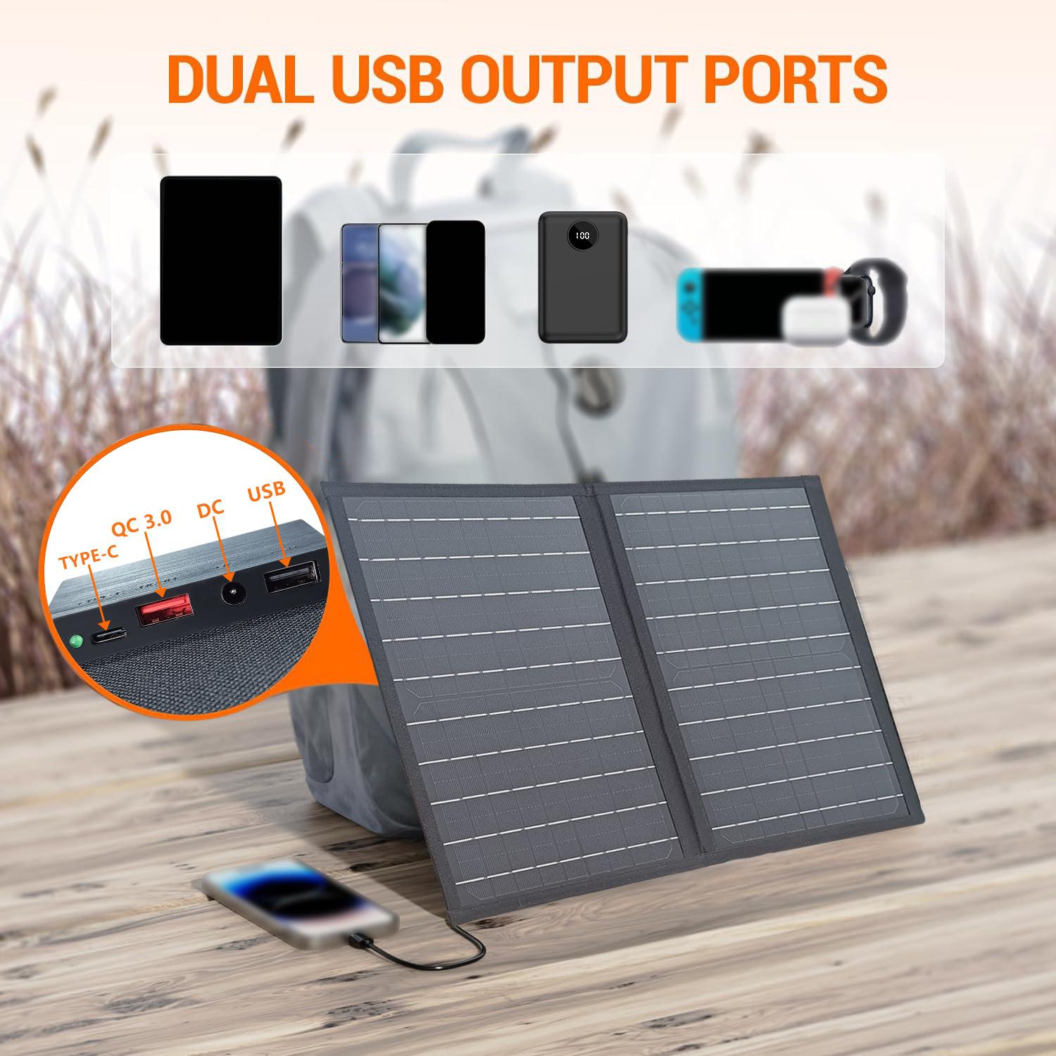 Cargador de panel solar de silicio monocristalino 20/40/60W para exteriores, emergencia, carga solar de teléfono móvil, panel fotovoltaico
