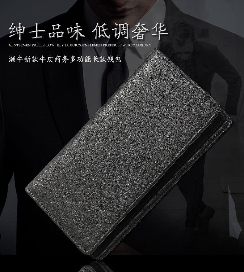Cartera larga de piel de vaca personalizada para hombre, monedero de moda, cartera de mano de cuero genuino para negocios, logotipo láser.