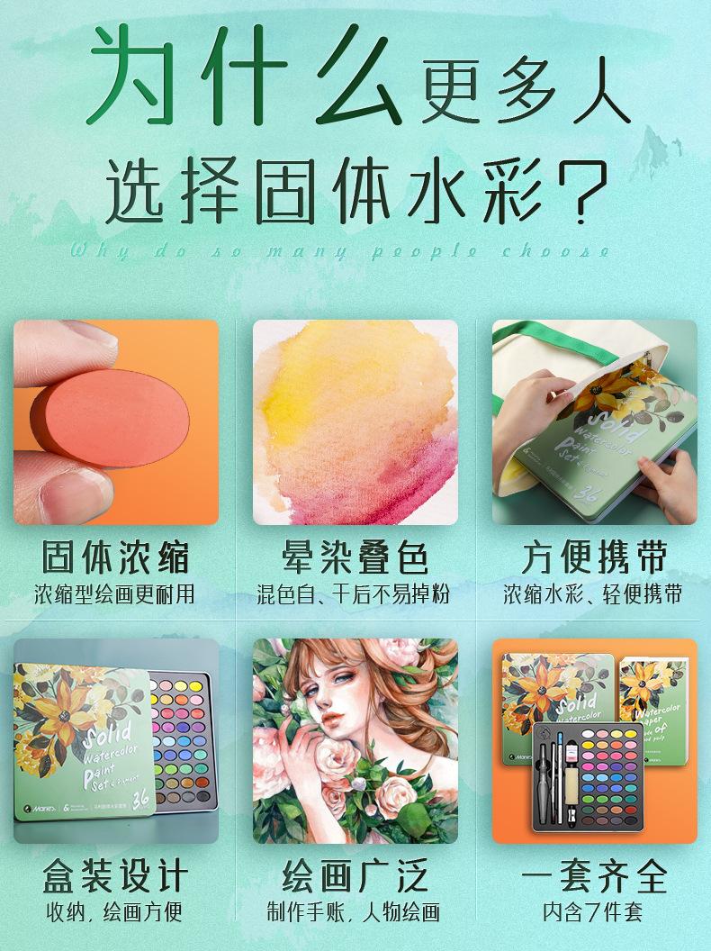 Compra Juego de pigmentos Marley, 36 colores, pigmento de acuarela, herramienta de pintura portátil para estudiantes, pintada a mano, en caja de hierro, acuarela sólida. al por mayor en Joom.pro