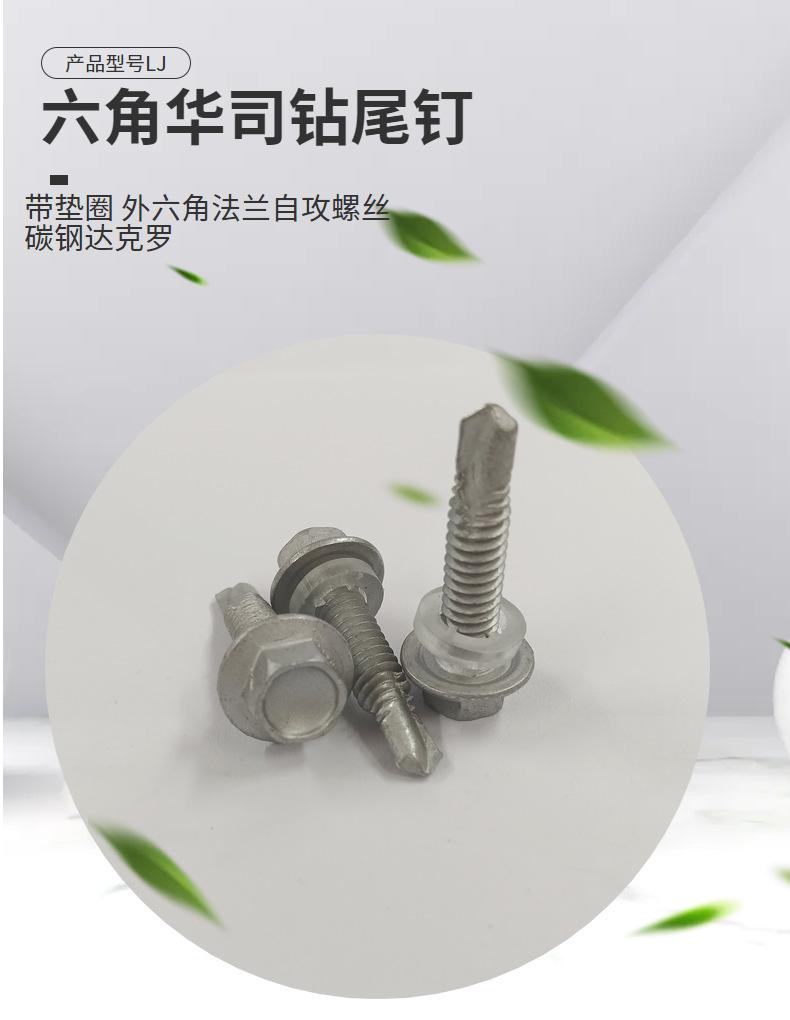 Clavo de cola de taladro hexagonal Huashi con arandela, brida hexagonal, tornillo autorroscante autoperforante, acero al carbono dacromet