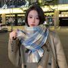 Bufanda de lana 100 % gruesa a cuadros para otoño e invierno, con un toque de atmósfera, para mujer, versátil, de moda, cálida y cómoda para el cuello.