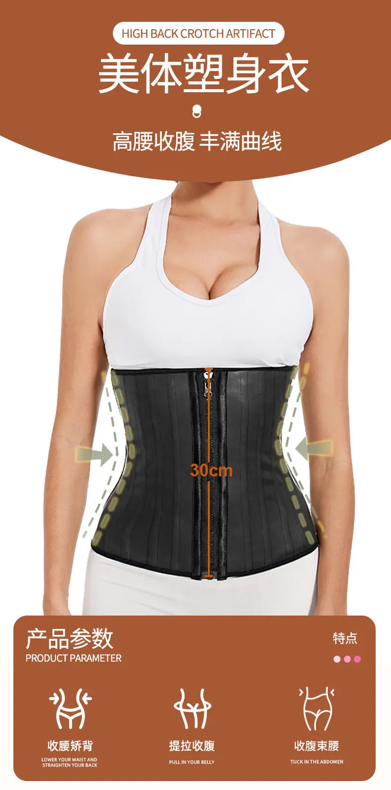 Nuevo Estilo Corsé Entrenador de Cintura Belleza Cintura 25 Varillas Hebilla Cremallera Látex Faja Moldeadora Reductor de Cintura Cinturón Deportivo