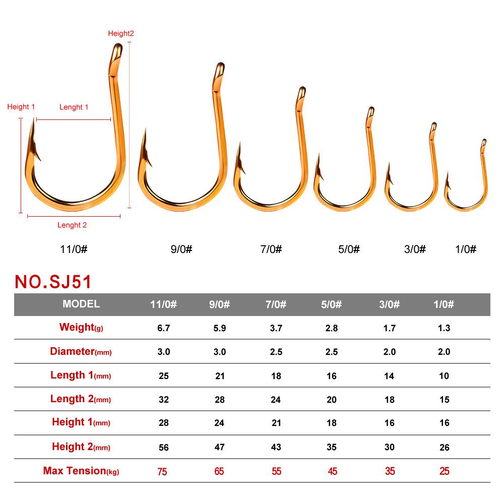 Hecho de acero con alto contenido de carbono, tiene un mango de gancho largo, una punta de gancho afilada, una fuerte resistencia a la corrosión y una alta tasa de captura de peces.