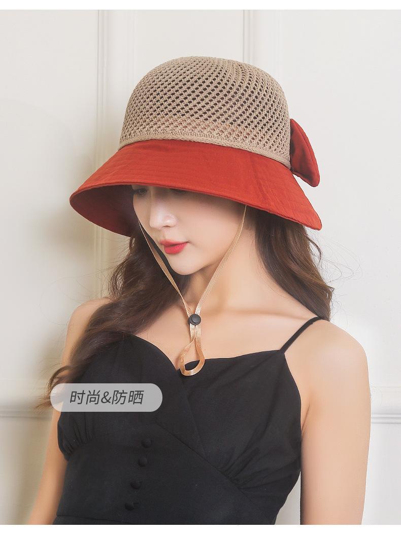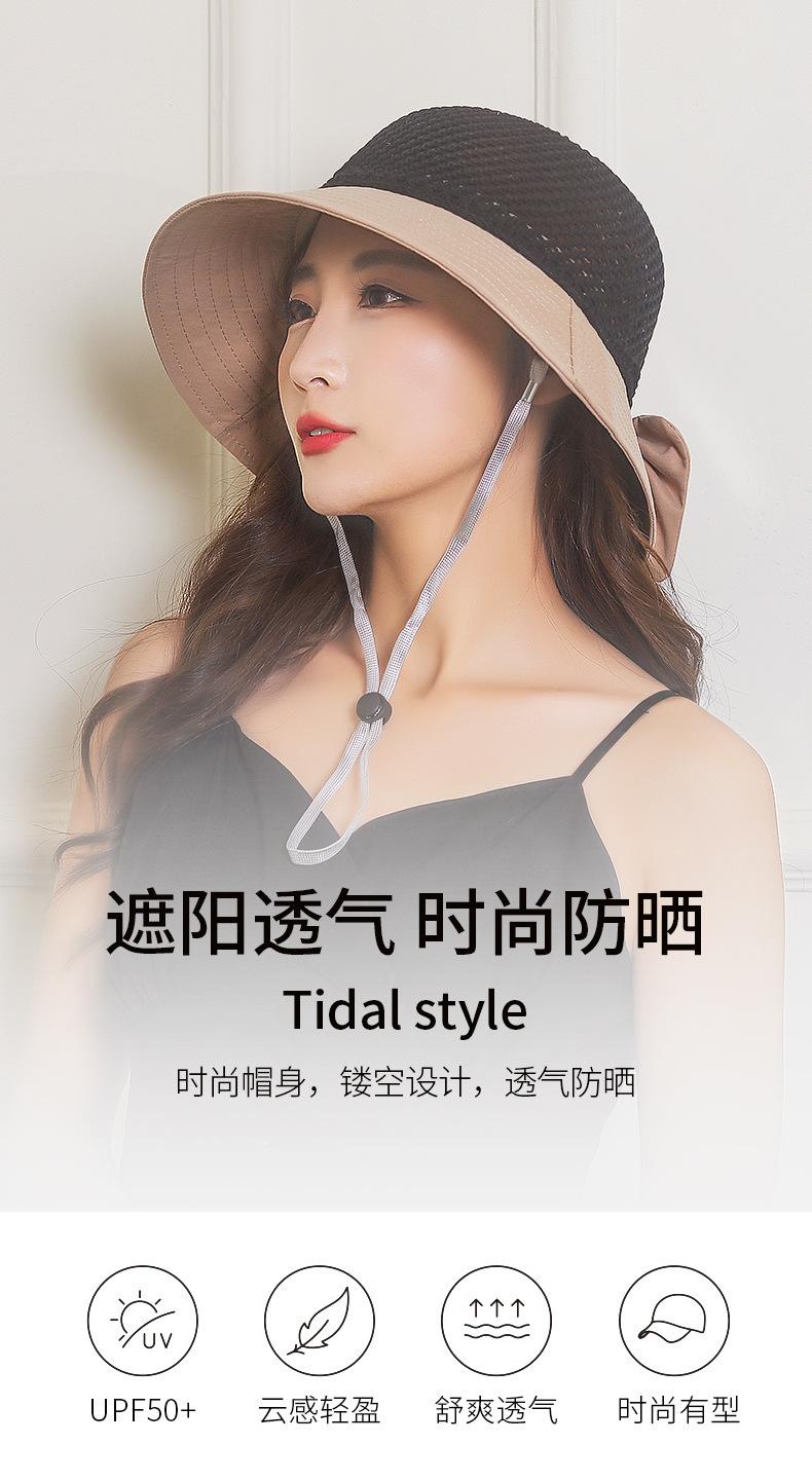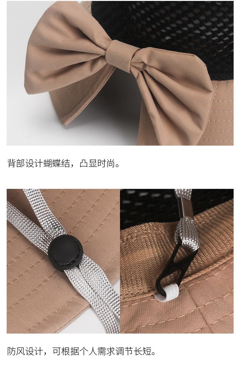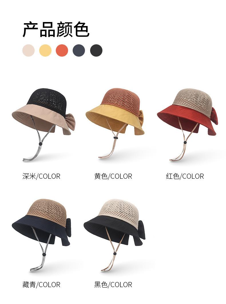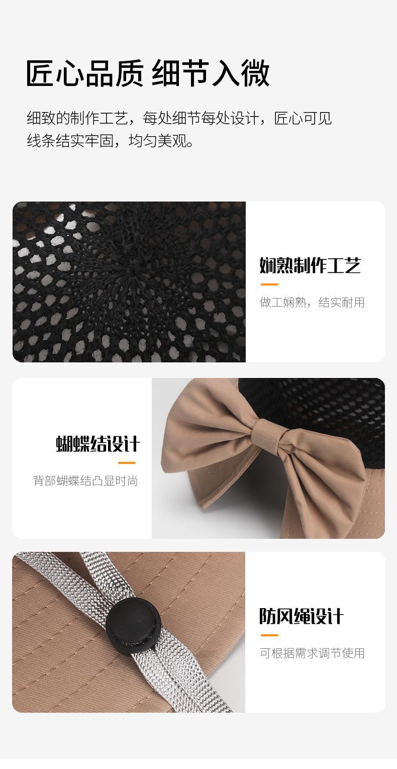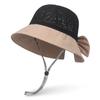 Nuevo sombrero de pescador con protección solar de verano para mujer, sombrero de playa con sombrilla hueca, sombrero de sol con lazo y cuerda resistente al viento.