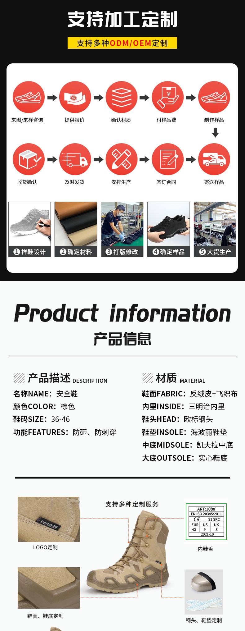 Calzado de protección laboral transfronterizo personalizado, antigolpes, antipinchazos y antideslizante, con puntera de acero, venta al por mayor de calzado de seguridad de caña alta para hombre.