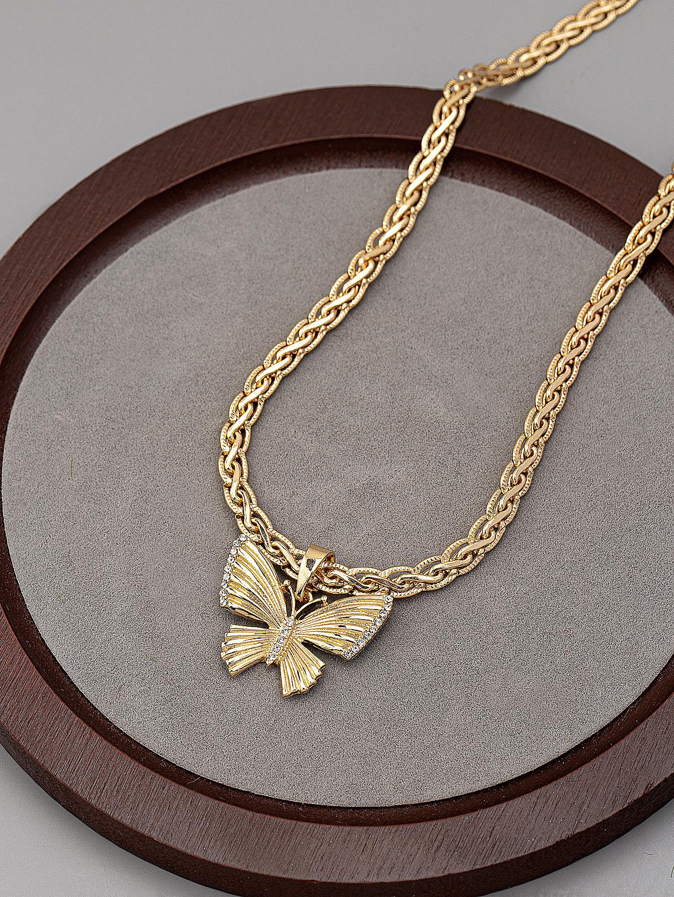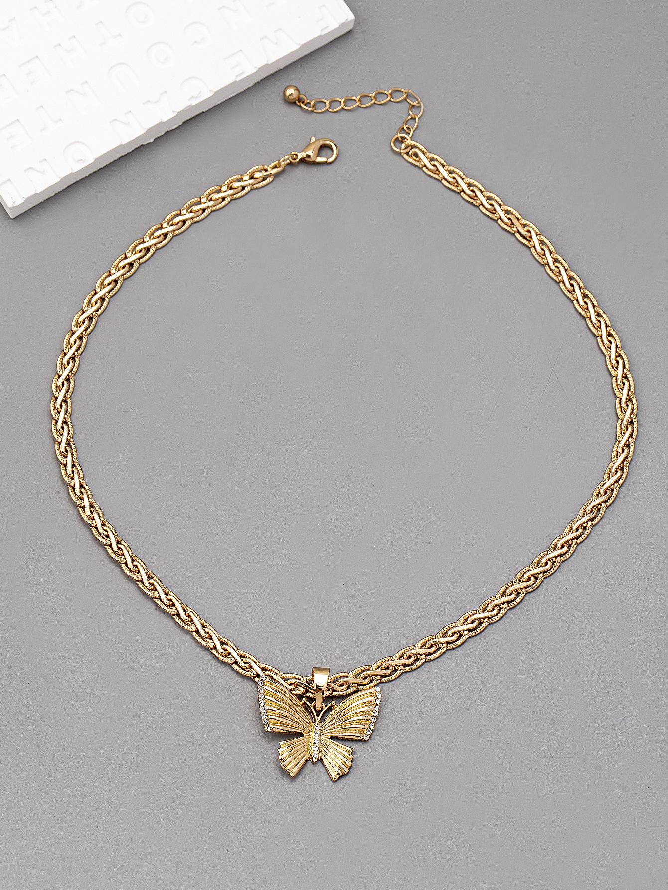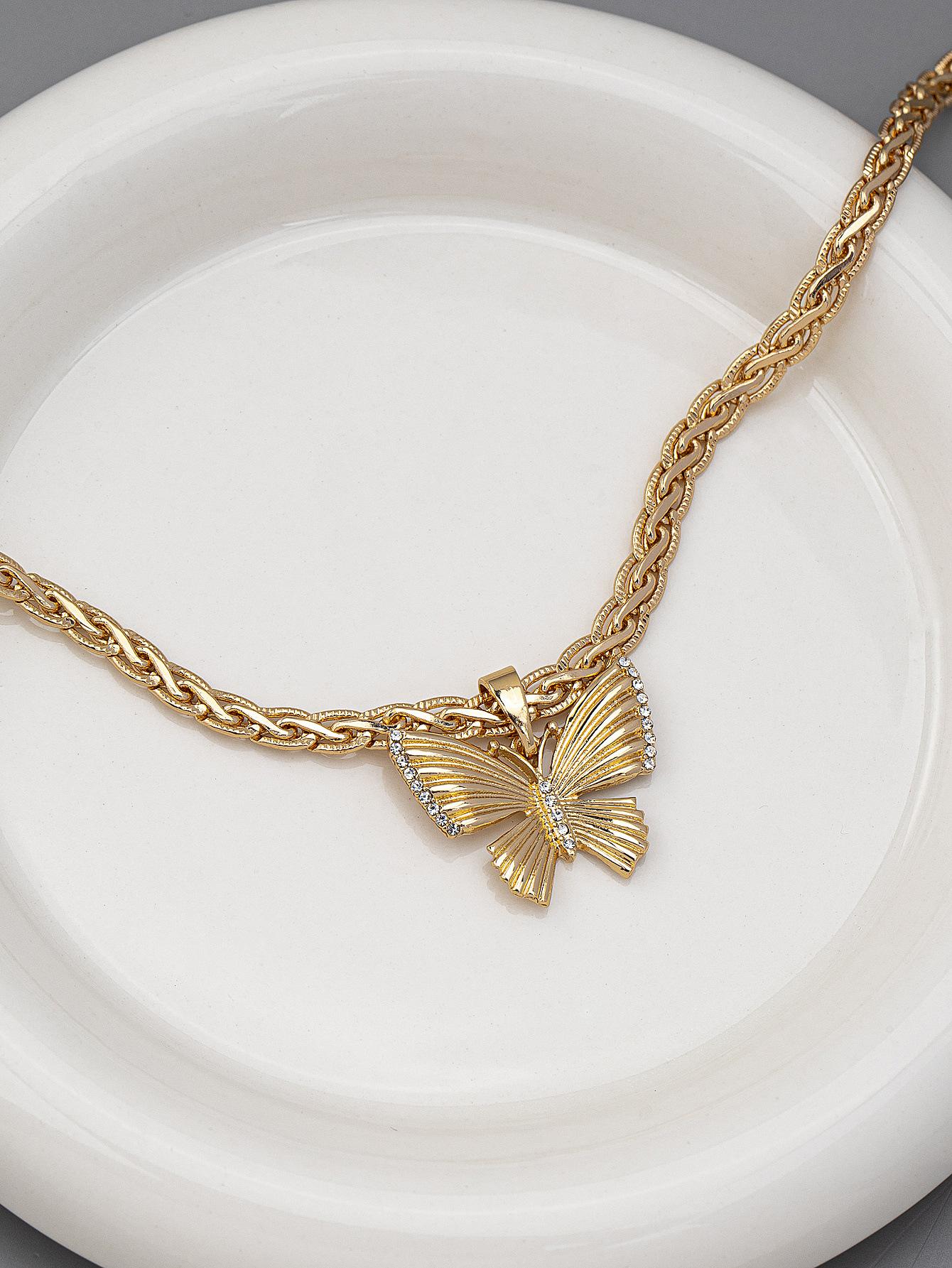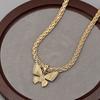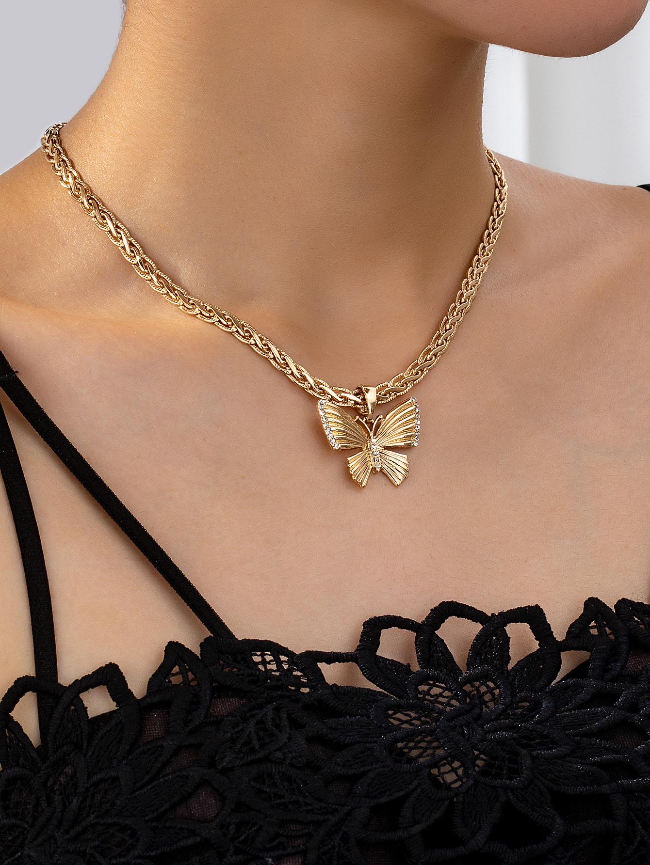 Collar con colgante de mariposa de metal retro francés, joyería transfronteriza europea y americana, cadena gruesa, cadena de clavícula con personalidad exagerada para mujer