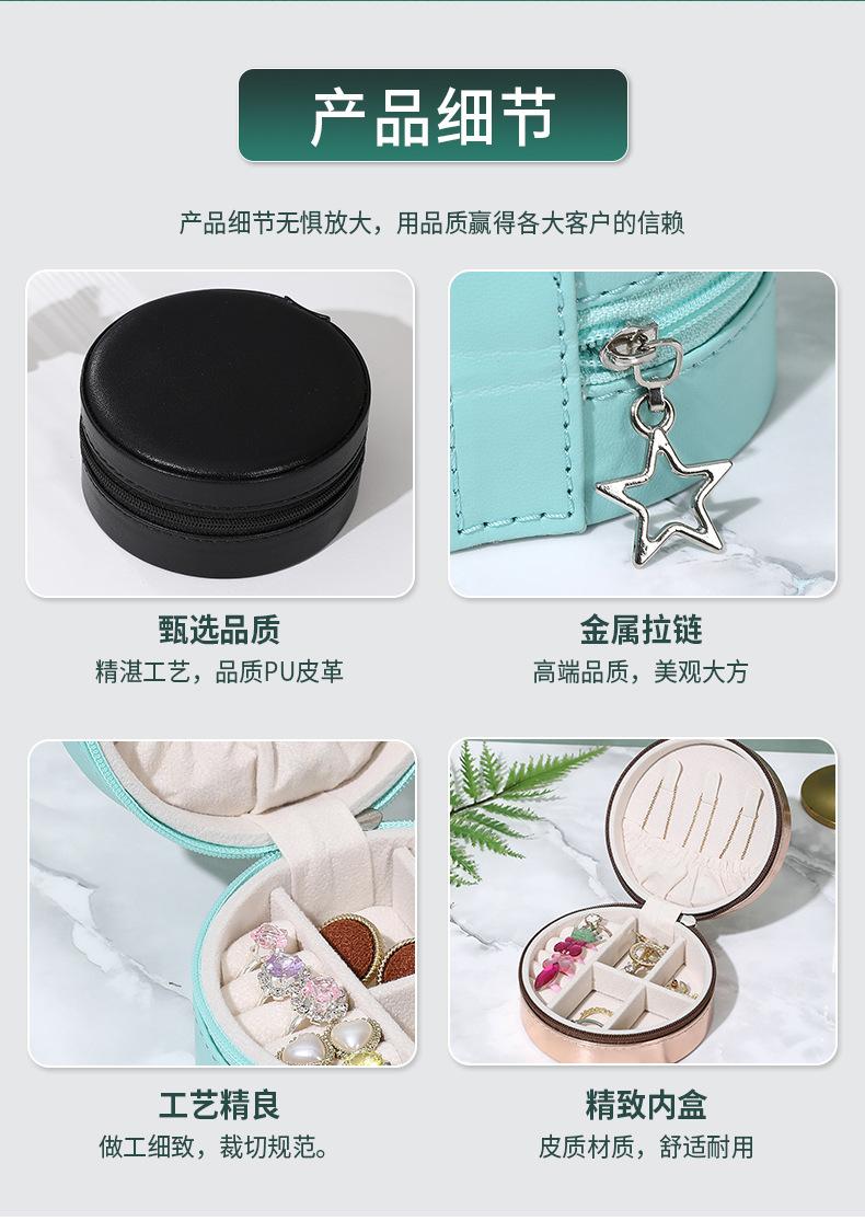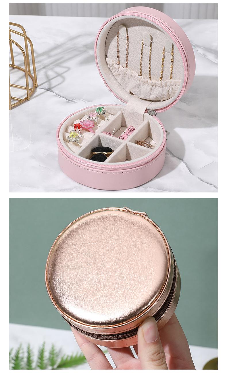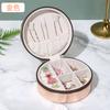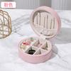 Caja redonda de cuero de tamaño pequeño y sencilla para guardar joyas, portátil, para viajes, anillos, joyas, regalo, venta al por mayor