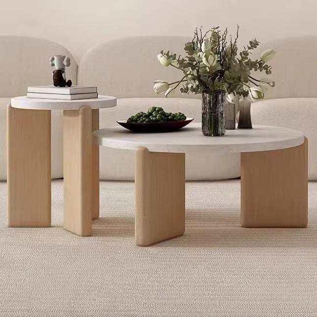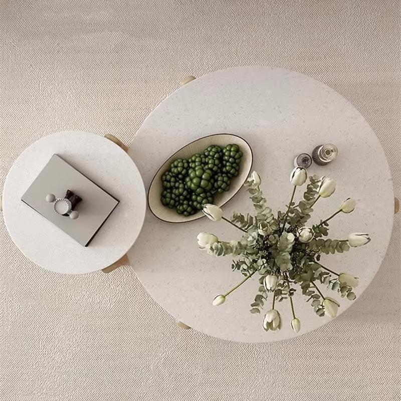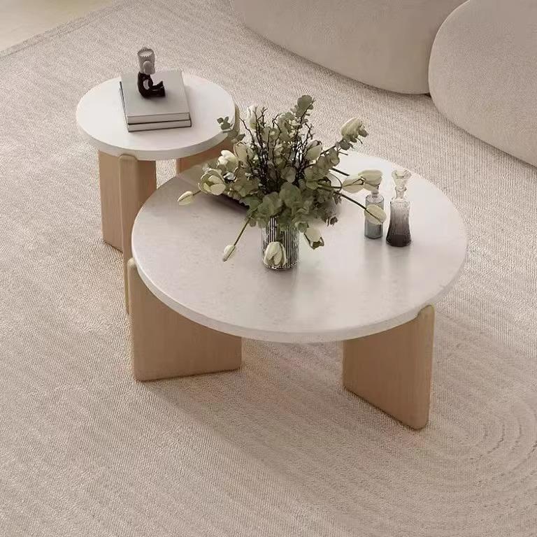 Mesa de centro estilo crema para sala de estar, hogar, apartamento pequeño, casa moderna sencilla, estilo silencioso, mesa pequeña, mesa de centro redonda combinada