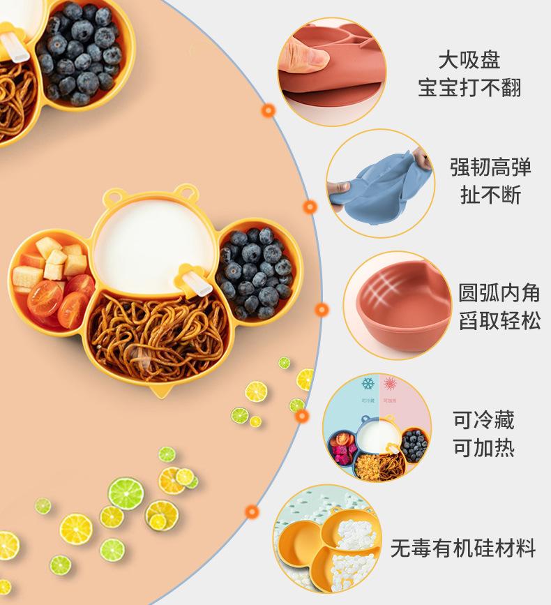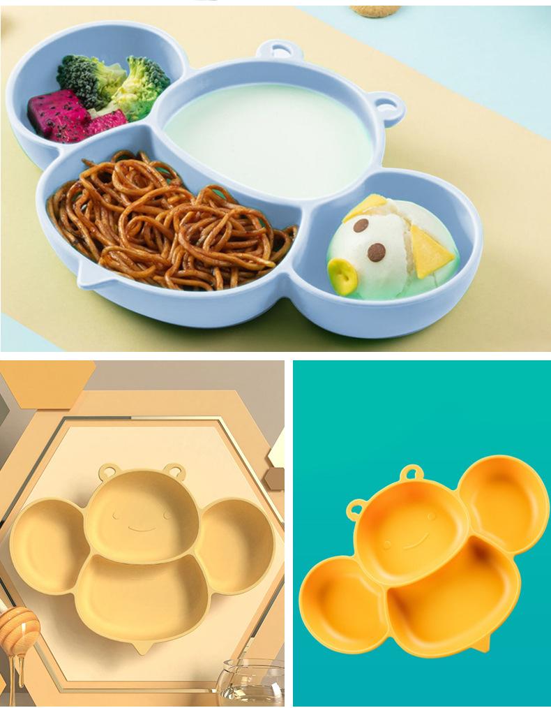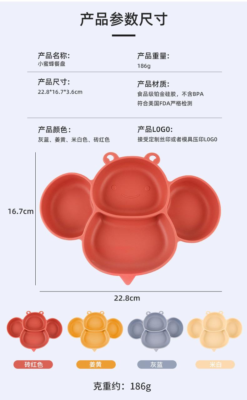 Vajilla de dibujos animados de abeja, plato de silicona de grado alimenticio para niños, tazón de cena, taza de agua para bebé, tazón, cuchara, traje