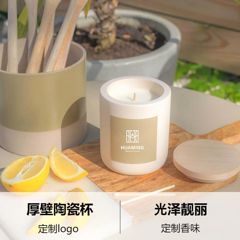 Taza de Cerámica Única de Pared Gruesa Vela de Aromaterapia Cera de Soja Luz de Dormitorio Fragancia Ambiental Interior de Larga Duración Adorno Vela