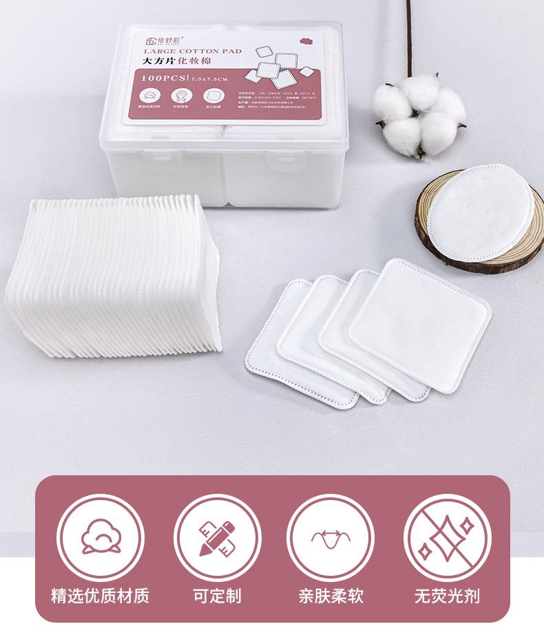 Algodones Gruesos Personalizados por el Fabricante, Algodones Cuadrados Grandes 7.5cm Borde Totalmente Prensado Algodones de Maquillaje, Algodones Desmaquillantes de Tamaño Grande