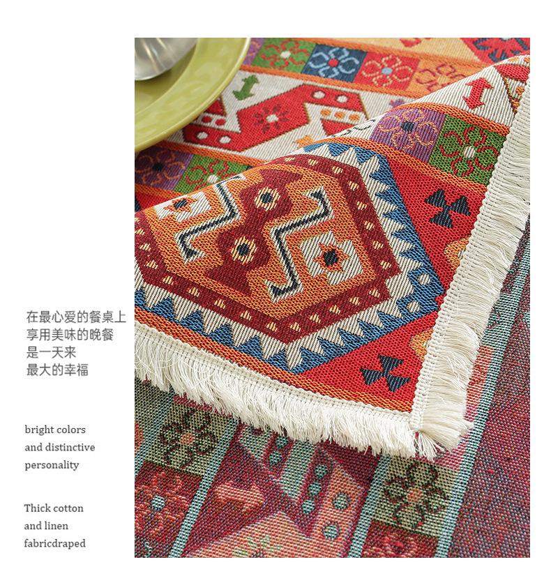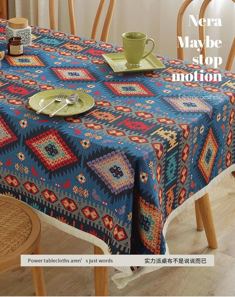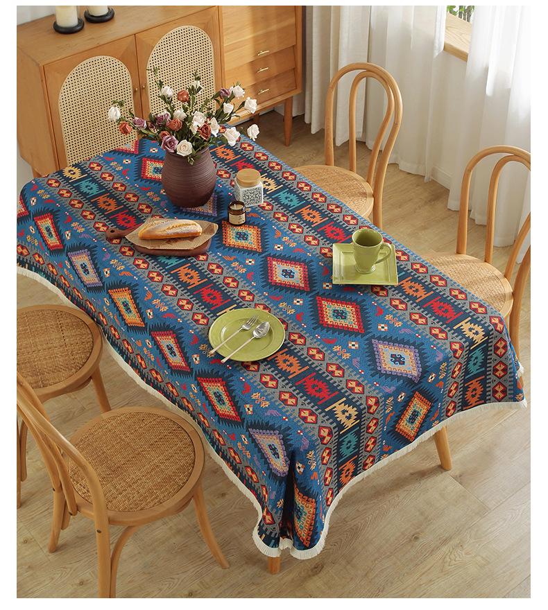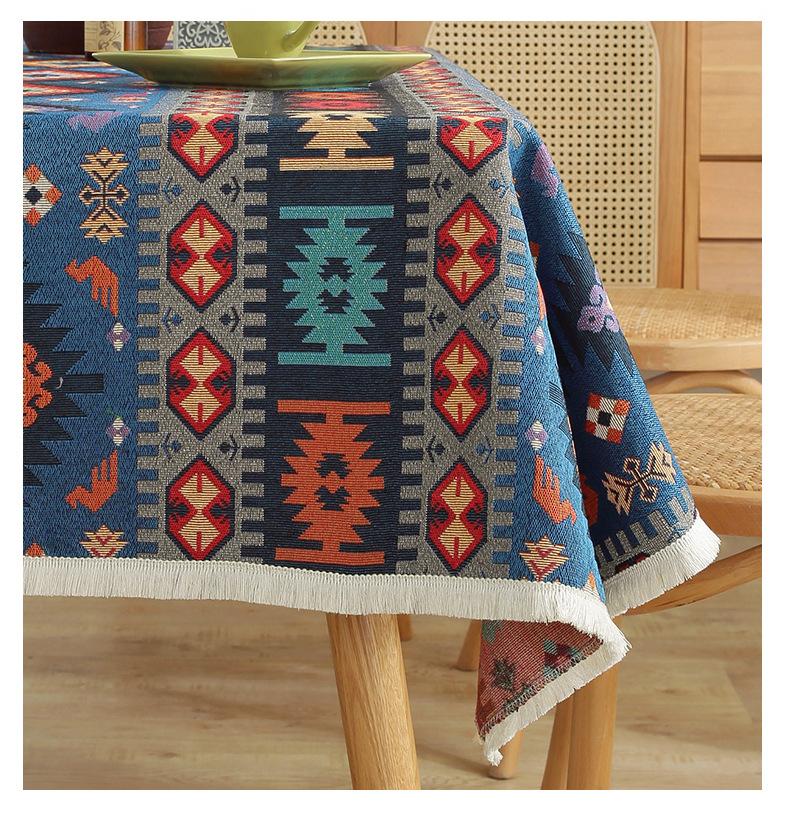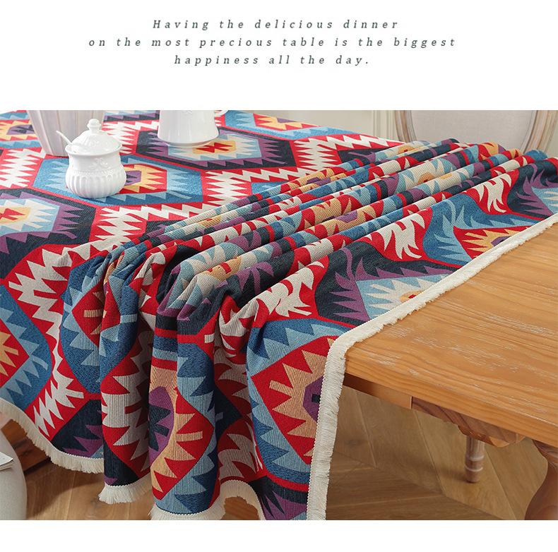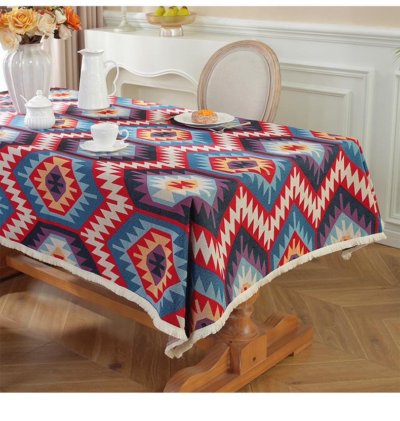 Mantel Jacquard Grueso de Algodón y Lino Americano Transfronterizo Vintage Mantel de Estilo Étnico Bohemio Cubierta con Borlas Venta al por Mayor