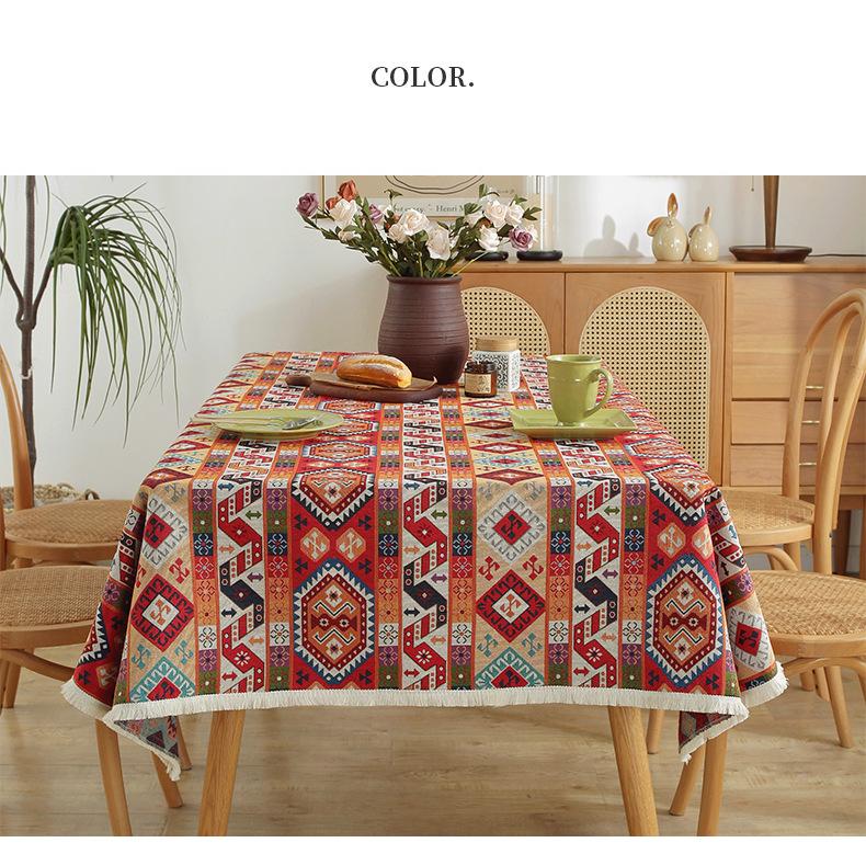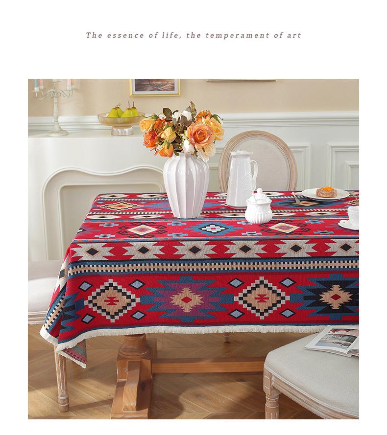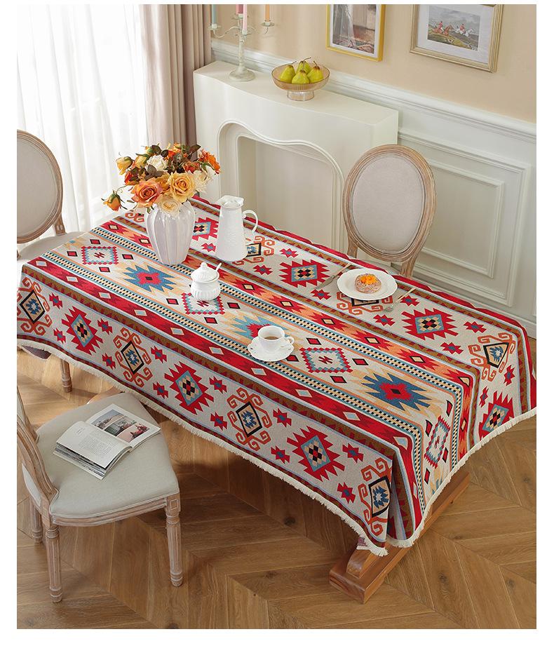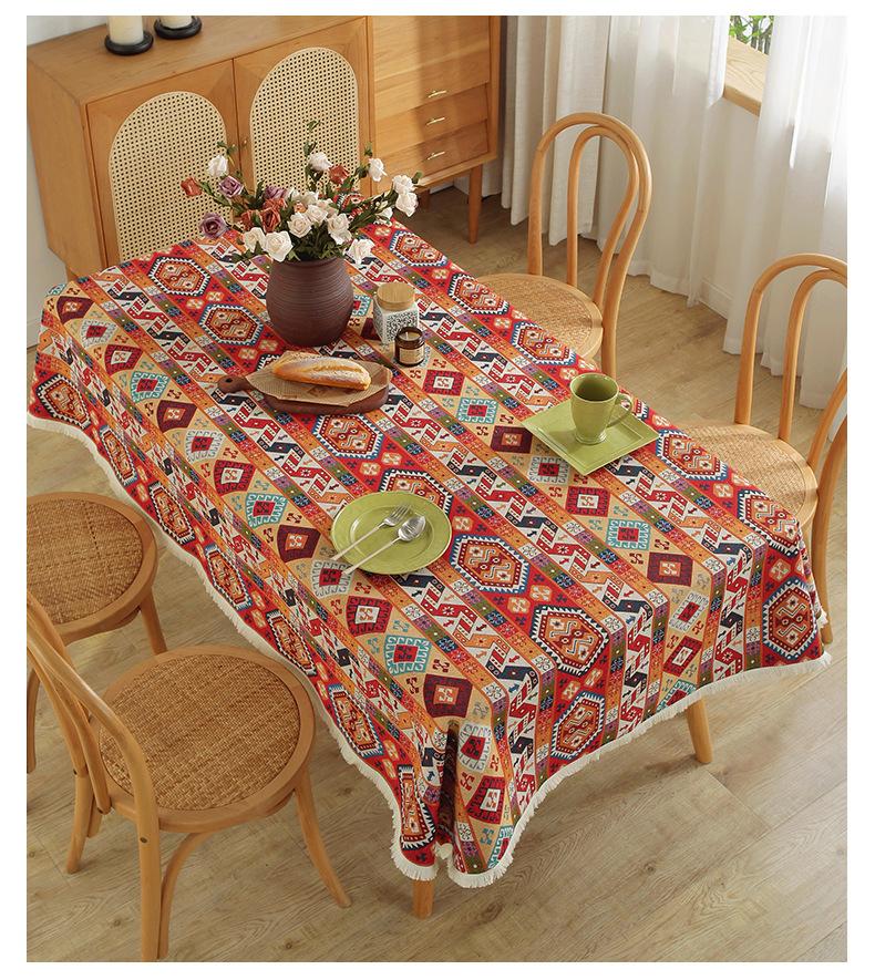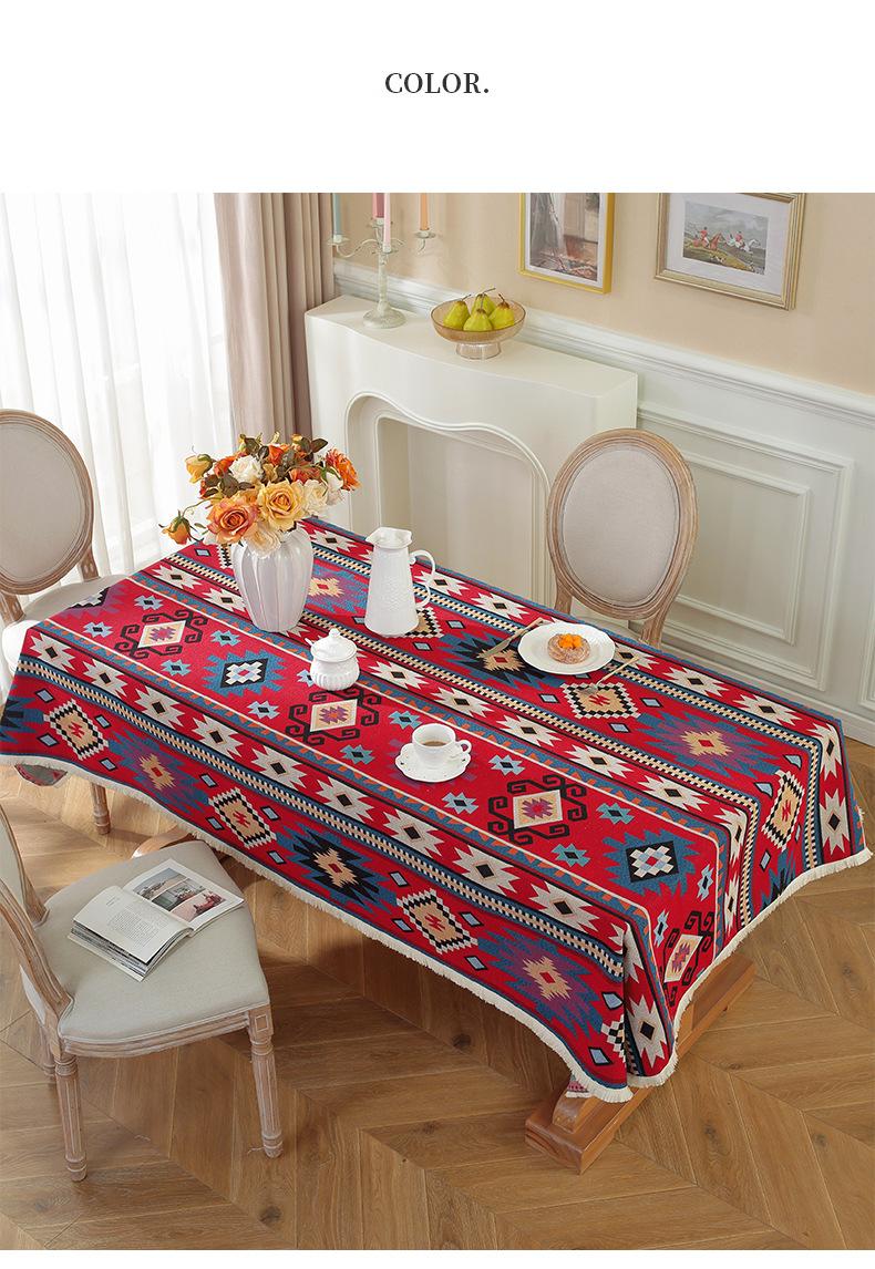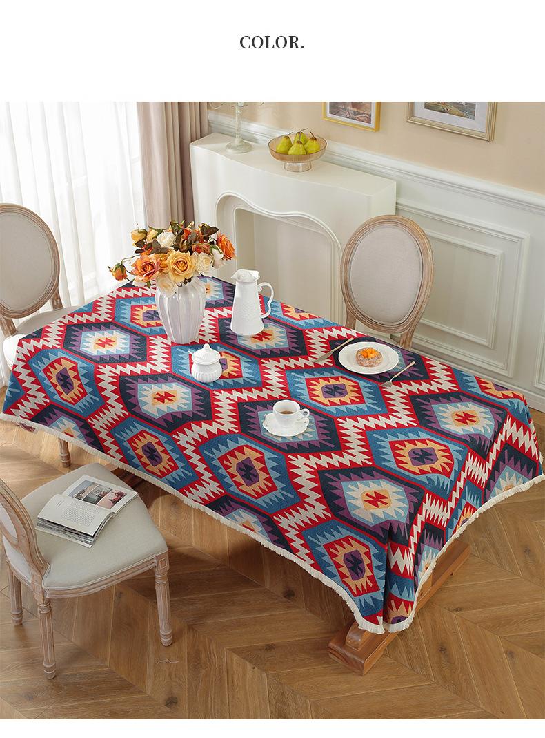 Mantel Jacquard Grueso de Algodón y Lino Americano Transfronterizo Vintage Mantel de Estilo Étnico Bohemio Cubierta con Borlas Venta al por Mayor