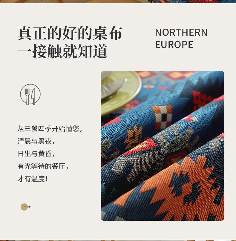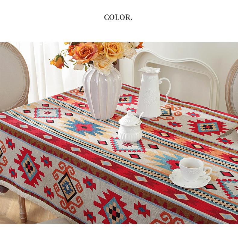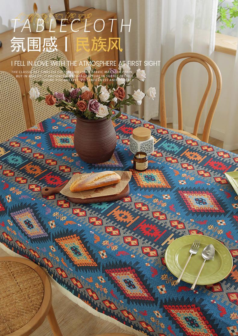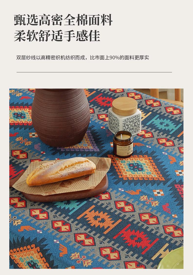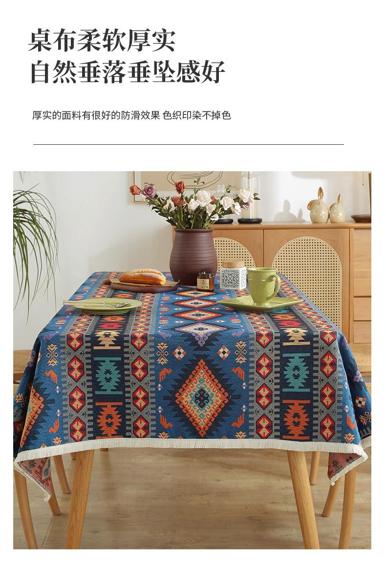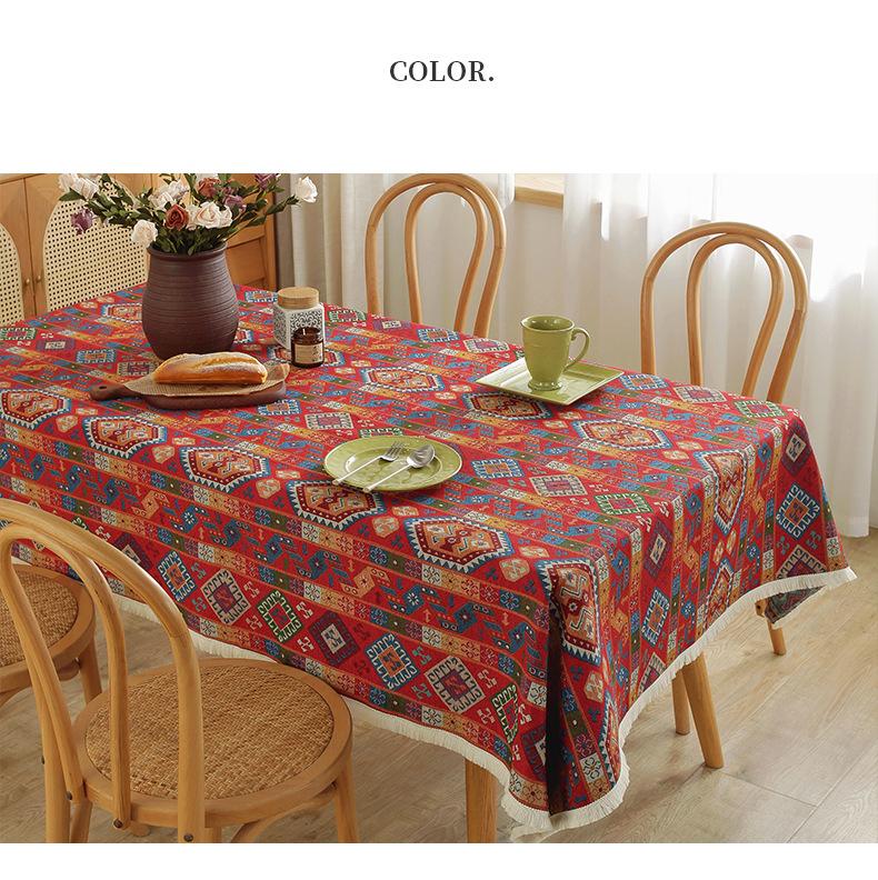 Mantel Jacquard Grueso de Algodón y Lino Americano Transfronterizo Vintage Mantel de Estilo Étnico Bohemio Cubierta con Borlas Venta al por Mayor