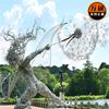 Escultura de diente de león de acero inoxidable personalizada, con diseño de hada y flor, ideal como punto escénico, con alambre, para decoración popular de paisajes.
