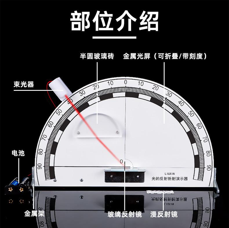 Demostrador de reflexión de luz que refracta material didáctico plegable, equipo experimental de óptica y física para escuelas secundarias.