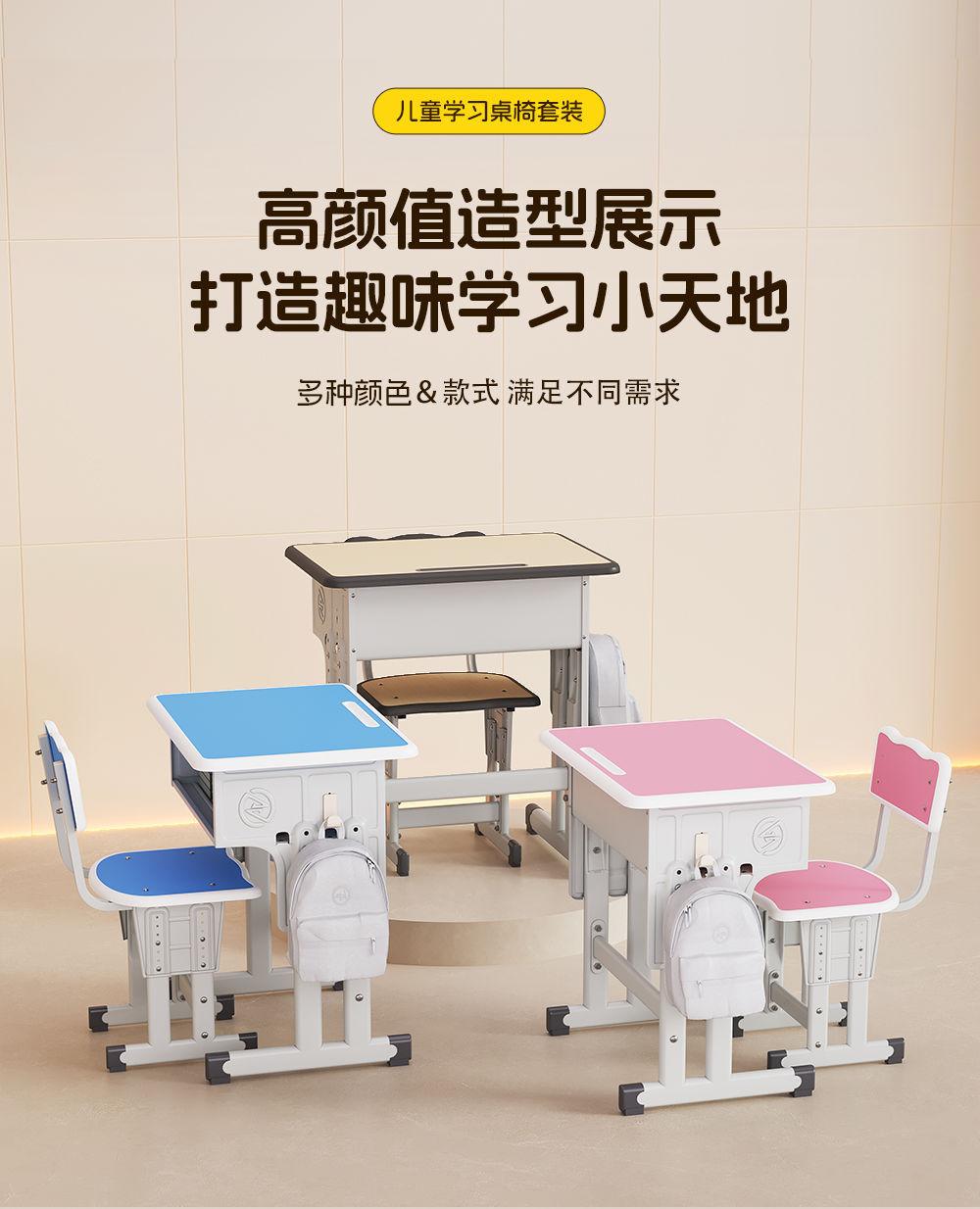 School style desks and chairs (4cm iron pillars) + wood color, School style desks and chairs (4cm iron pillars...