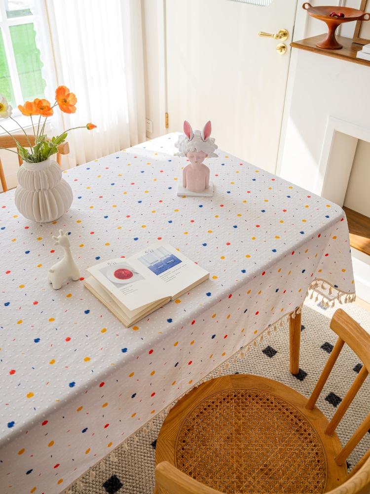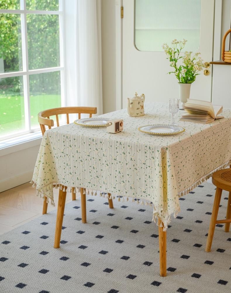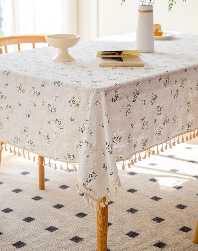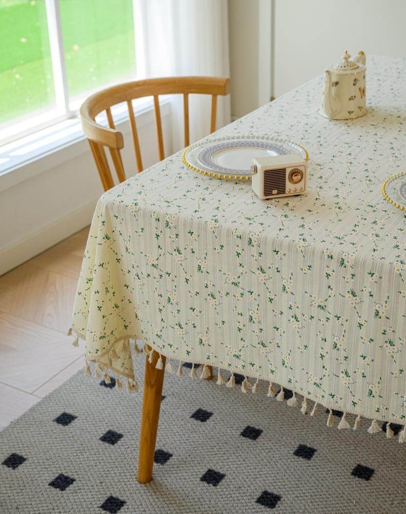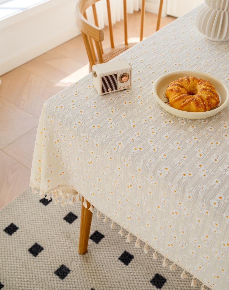 Compra Mantel pequeño de algodón y lino fresco con borlas y flores de margaritas pequeñas, rectangular y sencillo. al por mayor en Joom.pro