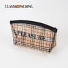 | Bolsa de almacenamiento de cosméticos de lona de algodón, ecológica, con veta de madera auténtica, color block, con cremallera, bolsa de viaje con forma de concha. |