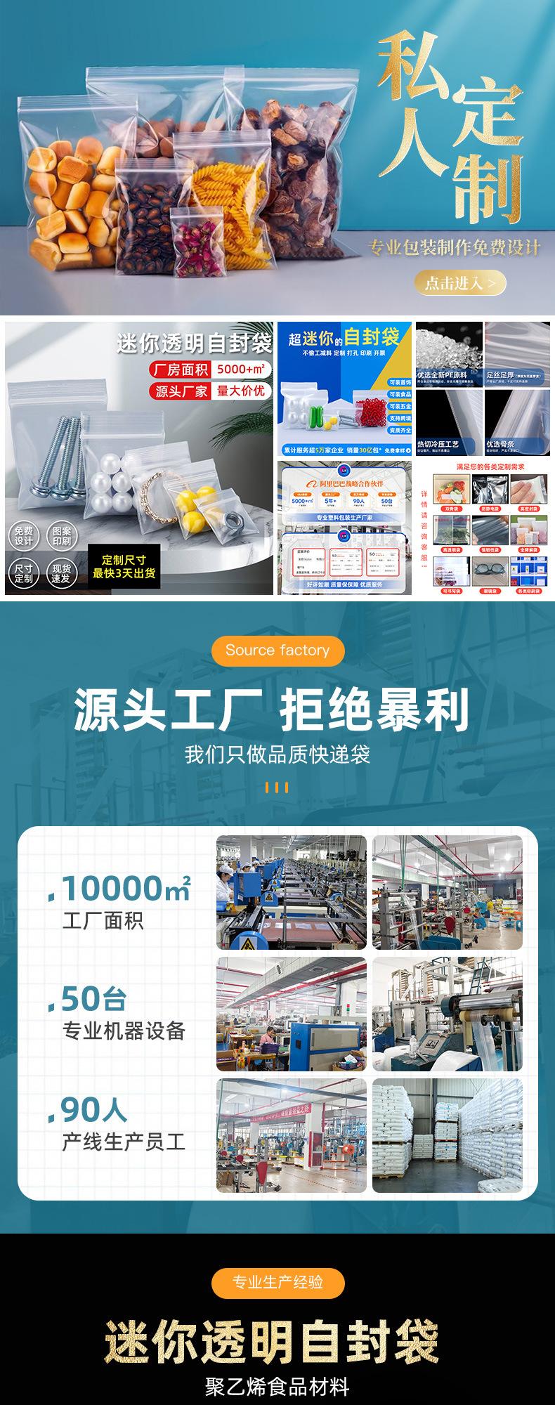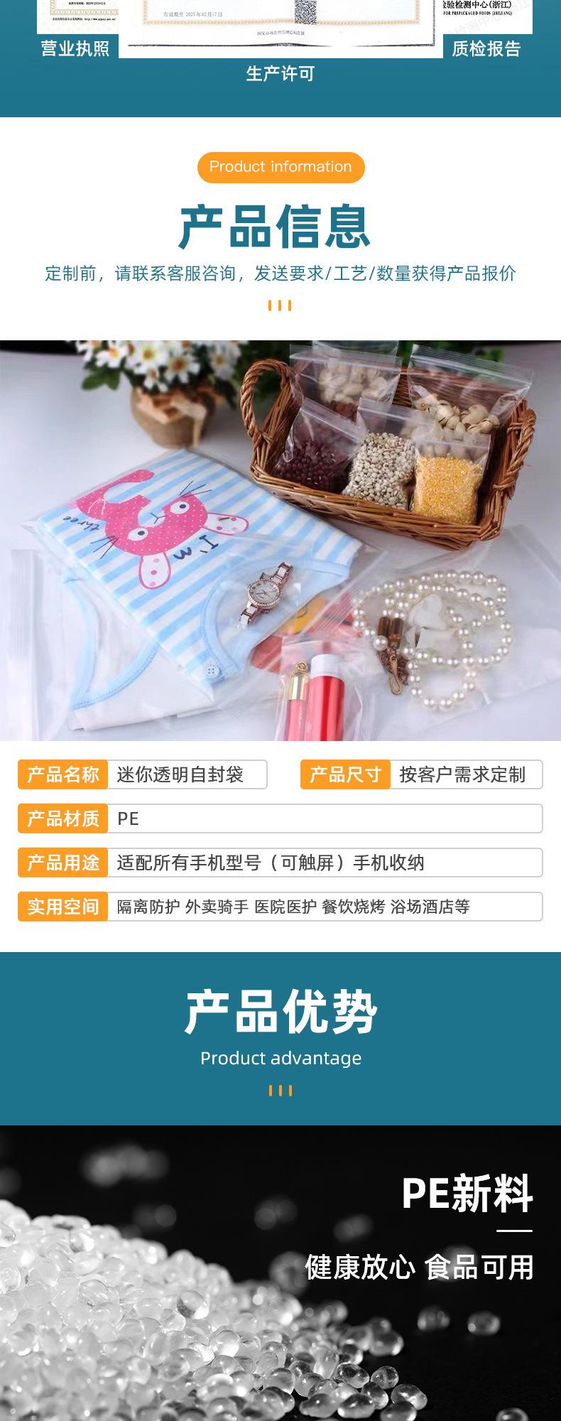 Bolsa de plástico transparente con autosellado para embalaje de PE, tamaño pequeño, para joyería, gran capacidad, para conservación de alimentos frescos, venta al por mayor