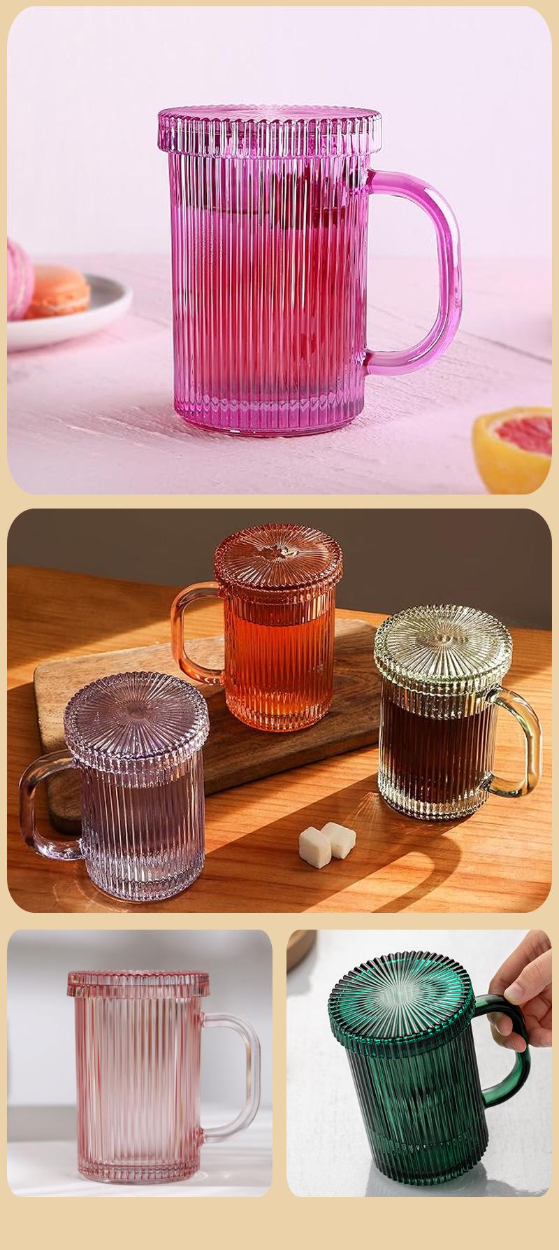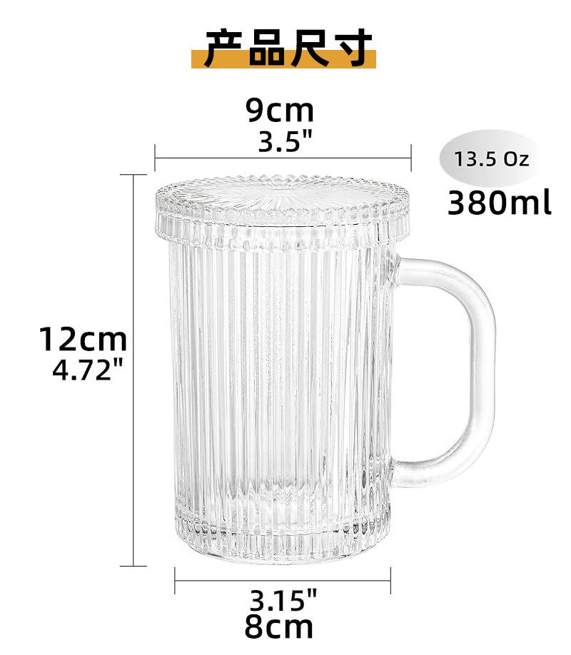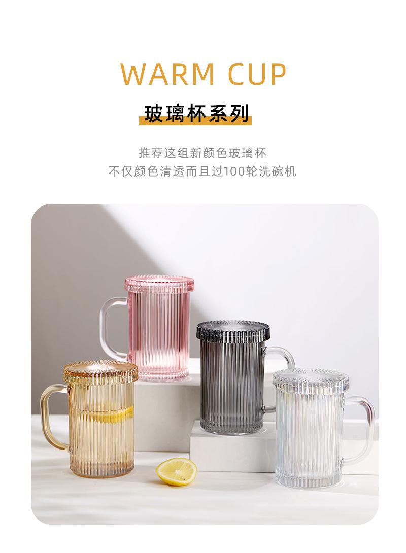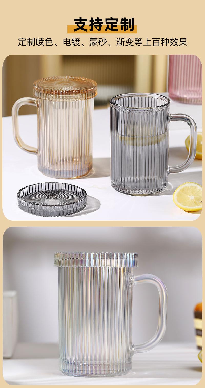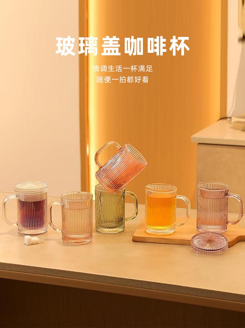 Taza de café de alta calidad con tapa de vidrio y asa, taza de té de rayas verticales, taza de agua para el hogar, taza de café de vidrio