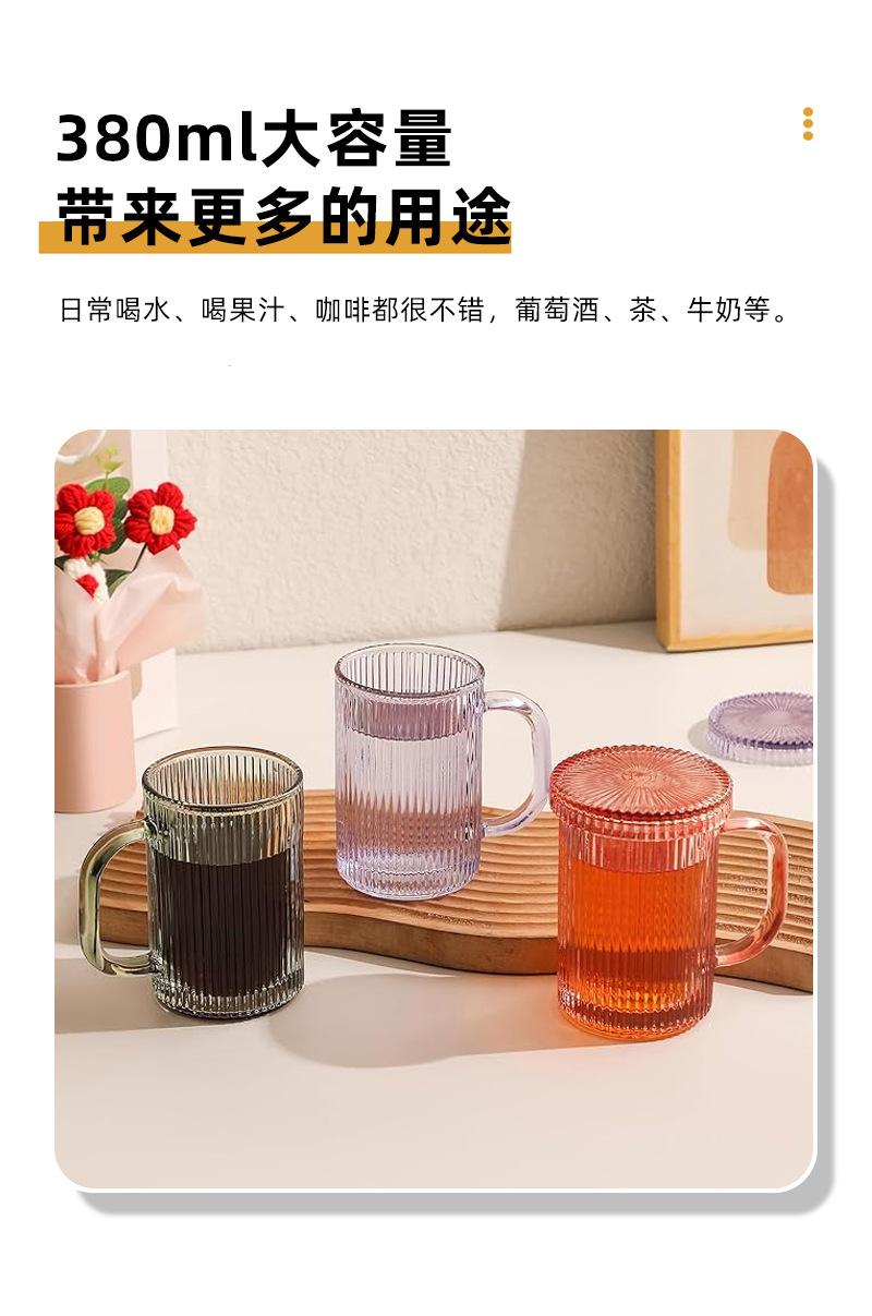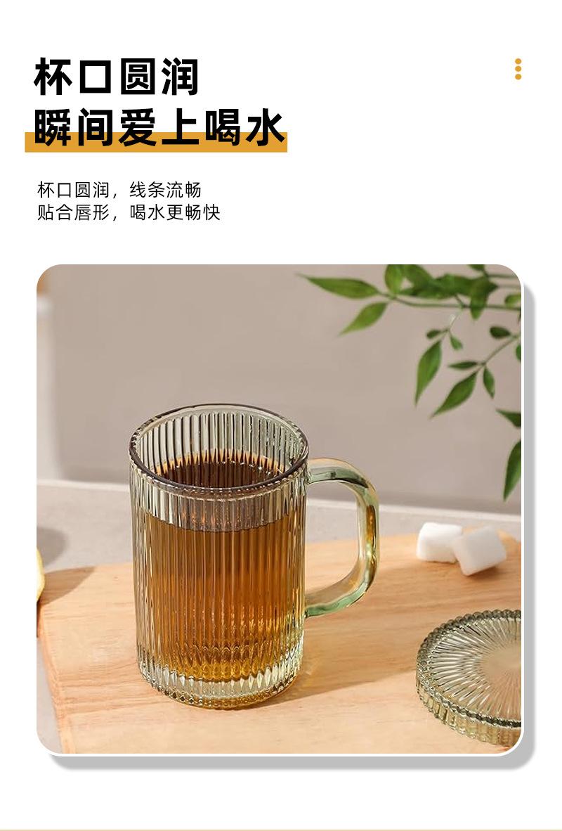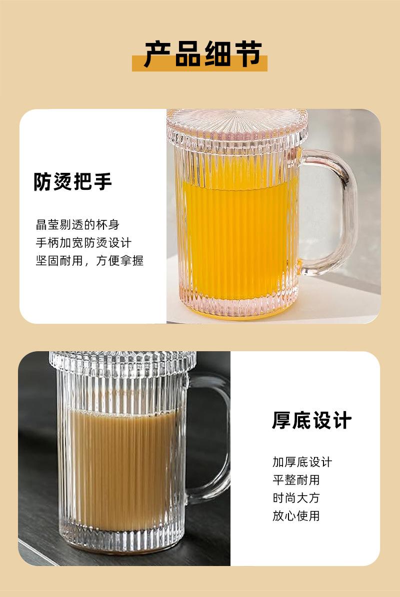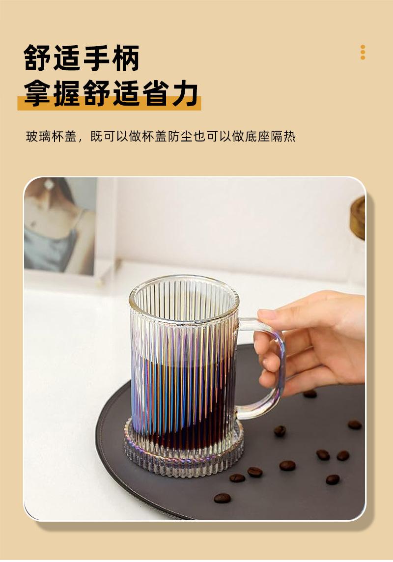 Taza de café de alta calidad con tapa de vidrio y asa, taza de té de rayas verticales, taza de agua para el hogar, taza de café de vidrio