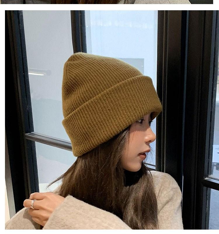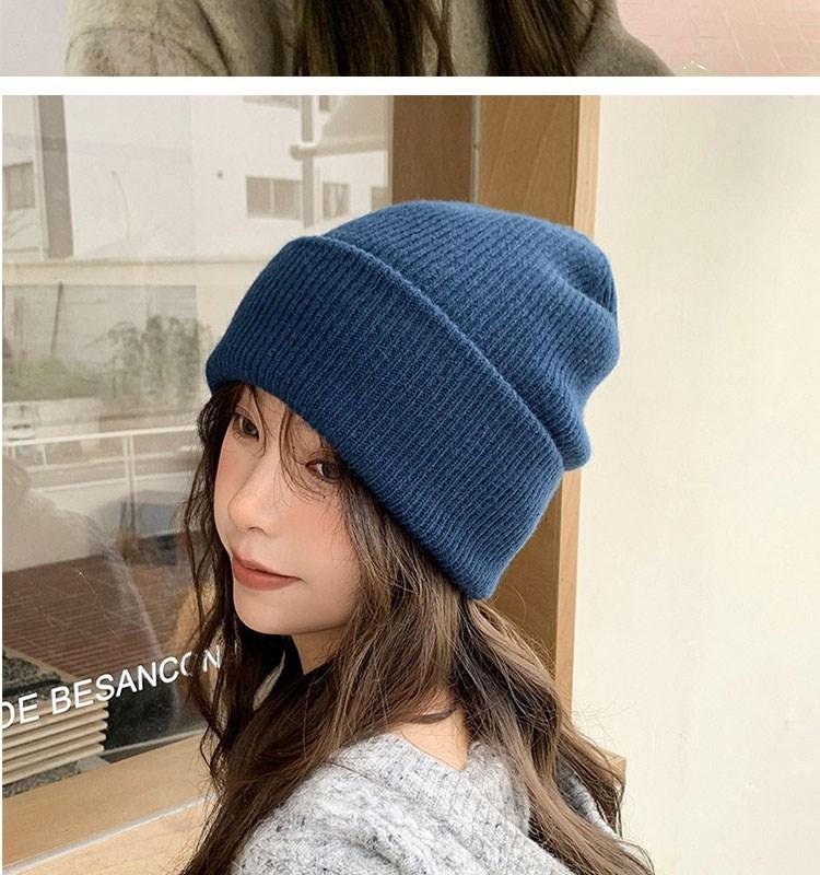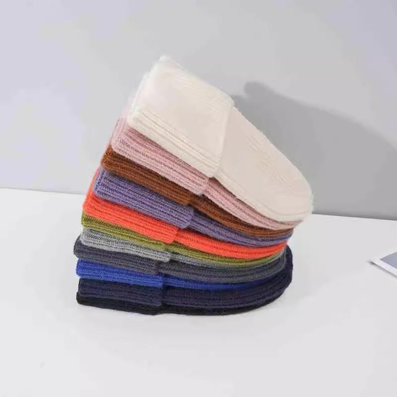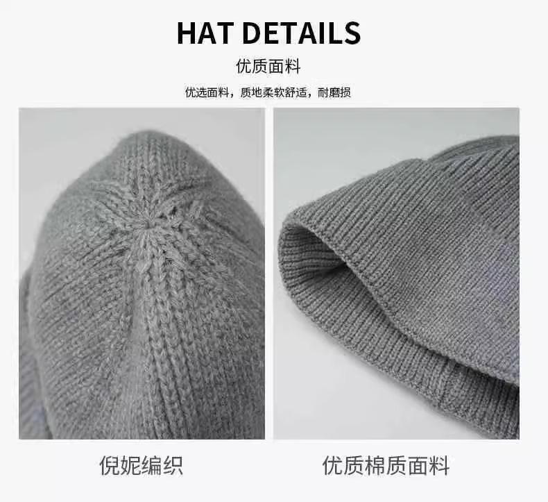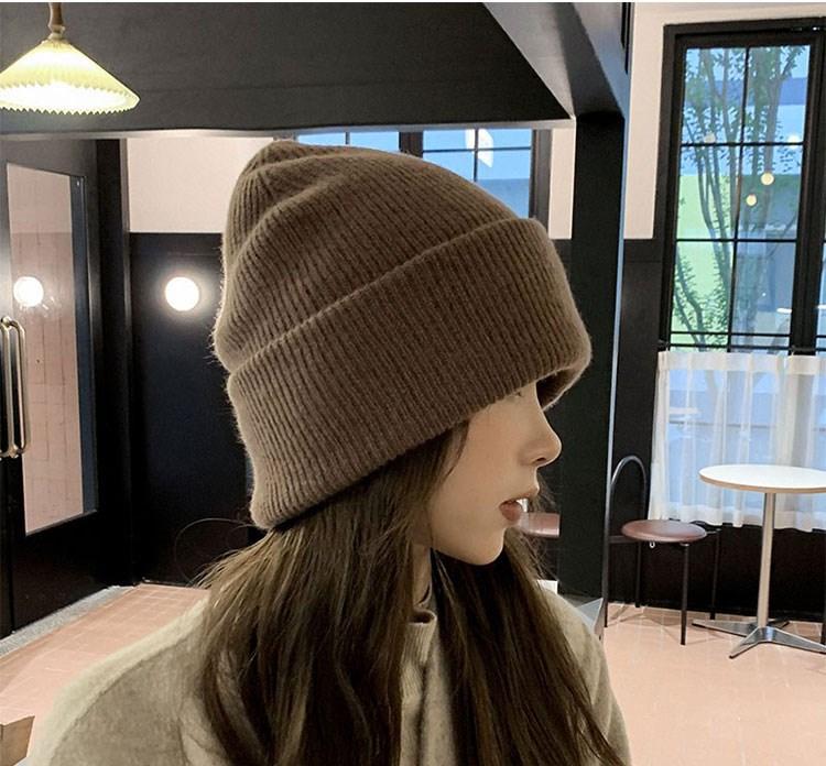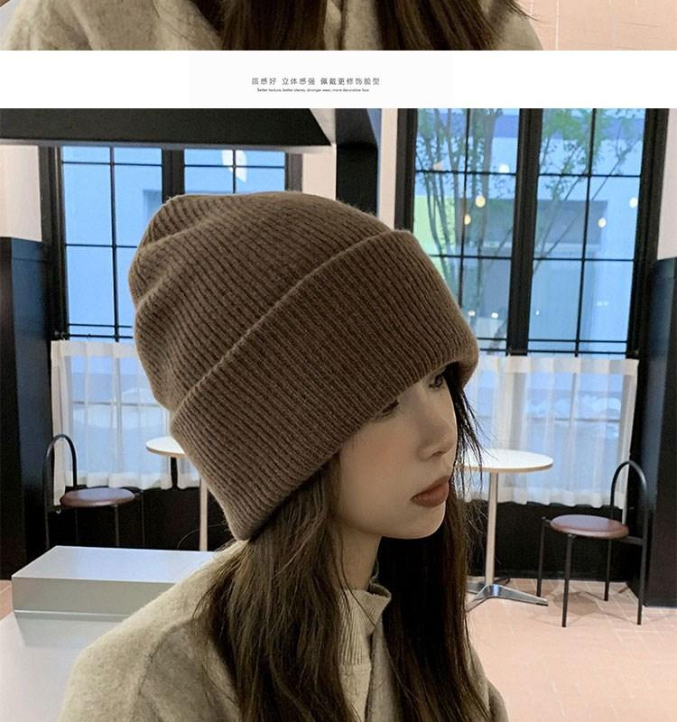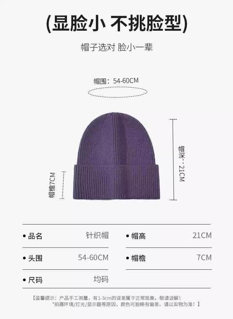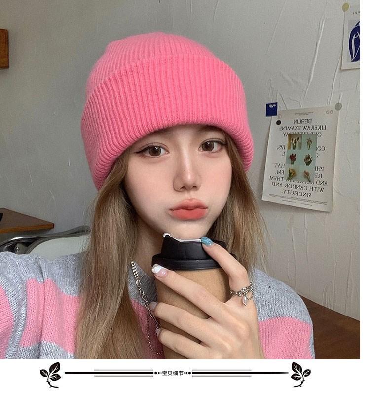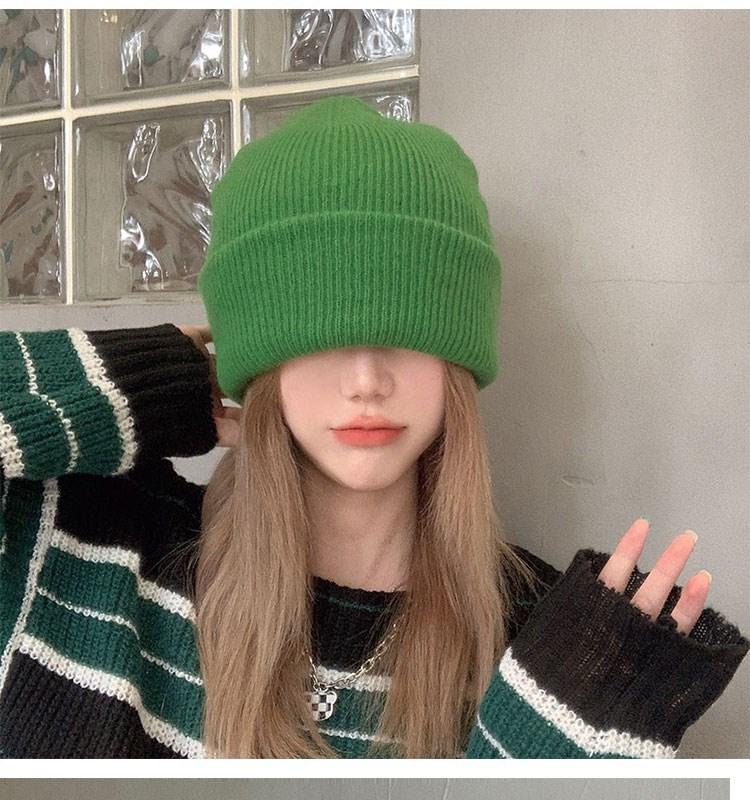 Gorro de punto para mujer, moda de otoño e invierno, combina con todo, protección para las orejas, gorro frío para la cabeza grande, gorro de lana Baotou cálido de color sólido japonés para hombre.