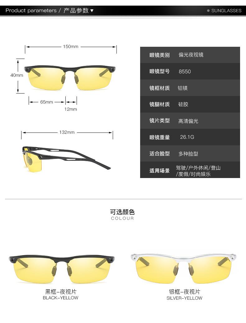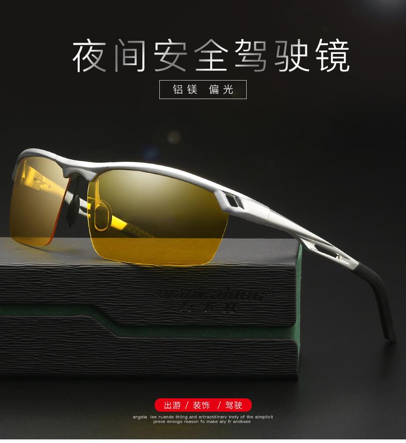Gafas de Sol de Aleación de Aluminio-Magnesio de Media Montura para Hombre 8550 Gafas de Conducción de Moda Gafas Polarizadas Antideslumbrantes Gafas de Visión Nocturna Gafas de Ciclismo
