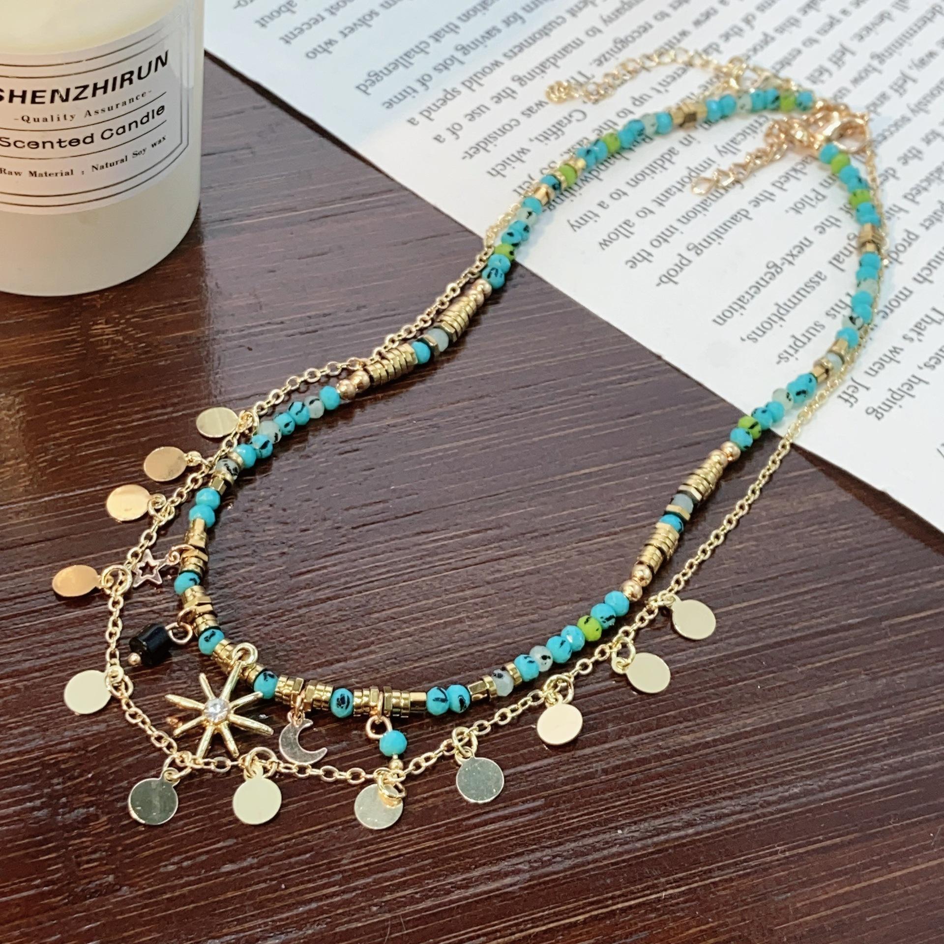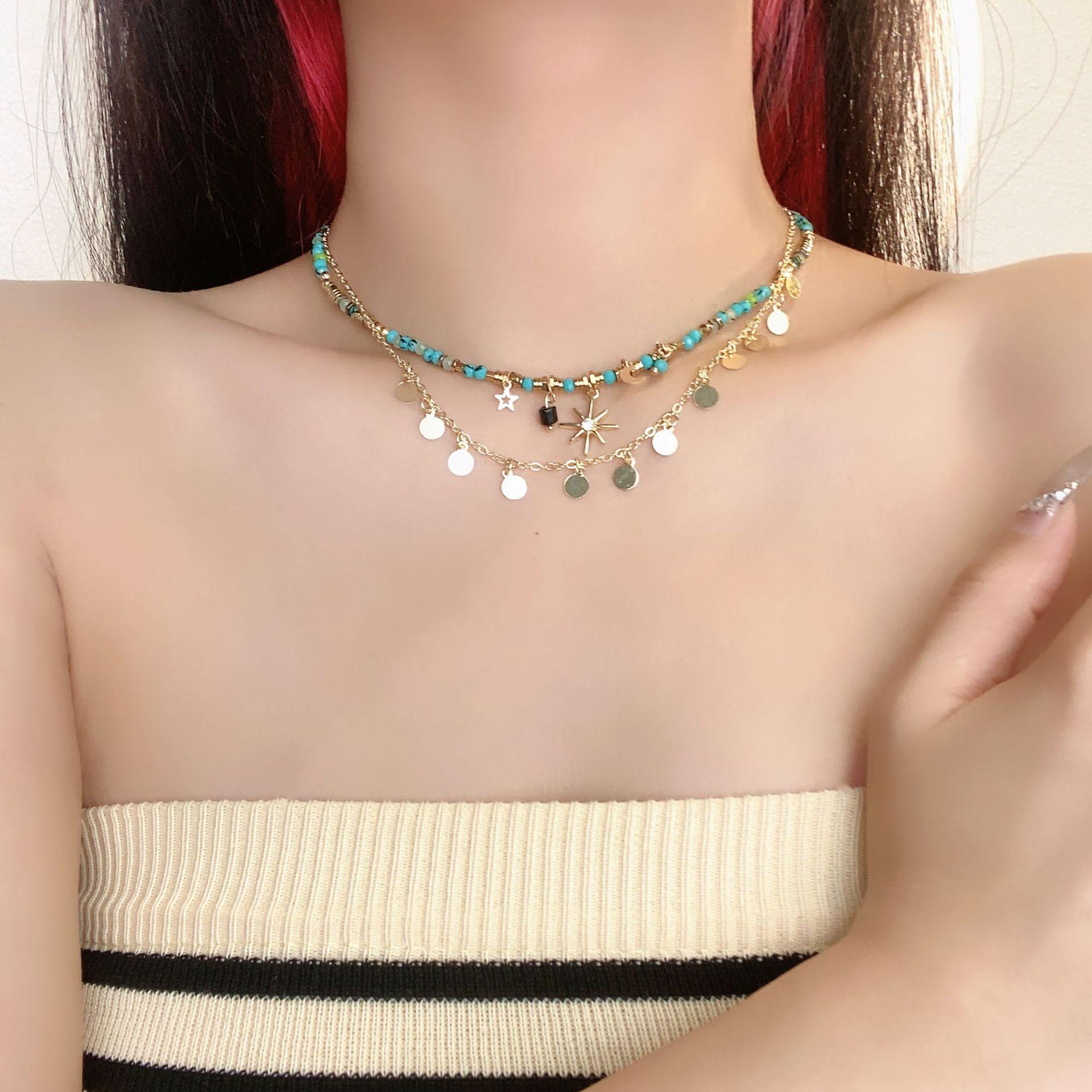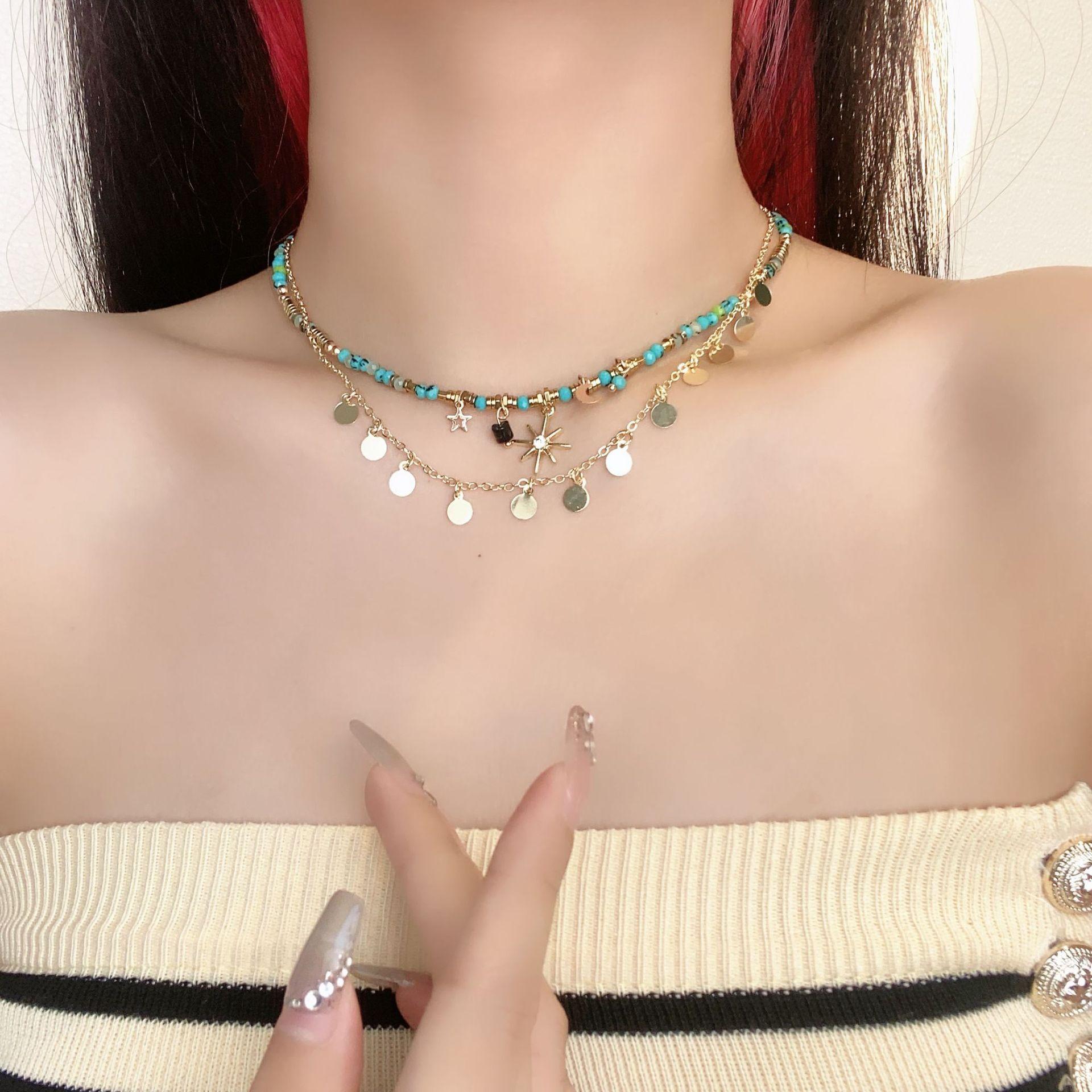Collar vintage de cuentas apiladas de doble capa para mujer, collar de diseño de nicho ligero y lujoso, collar de cadena de clavícula personalizado de alta gama para verano.