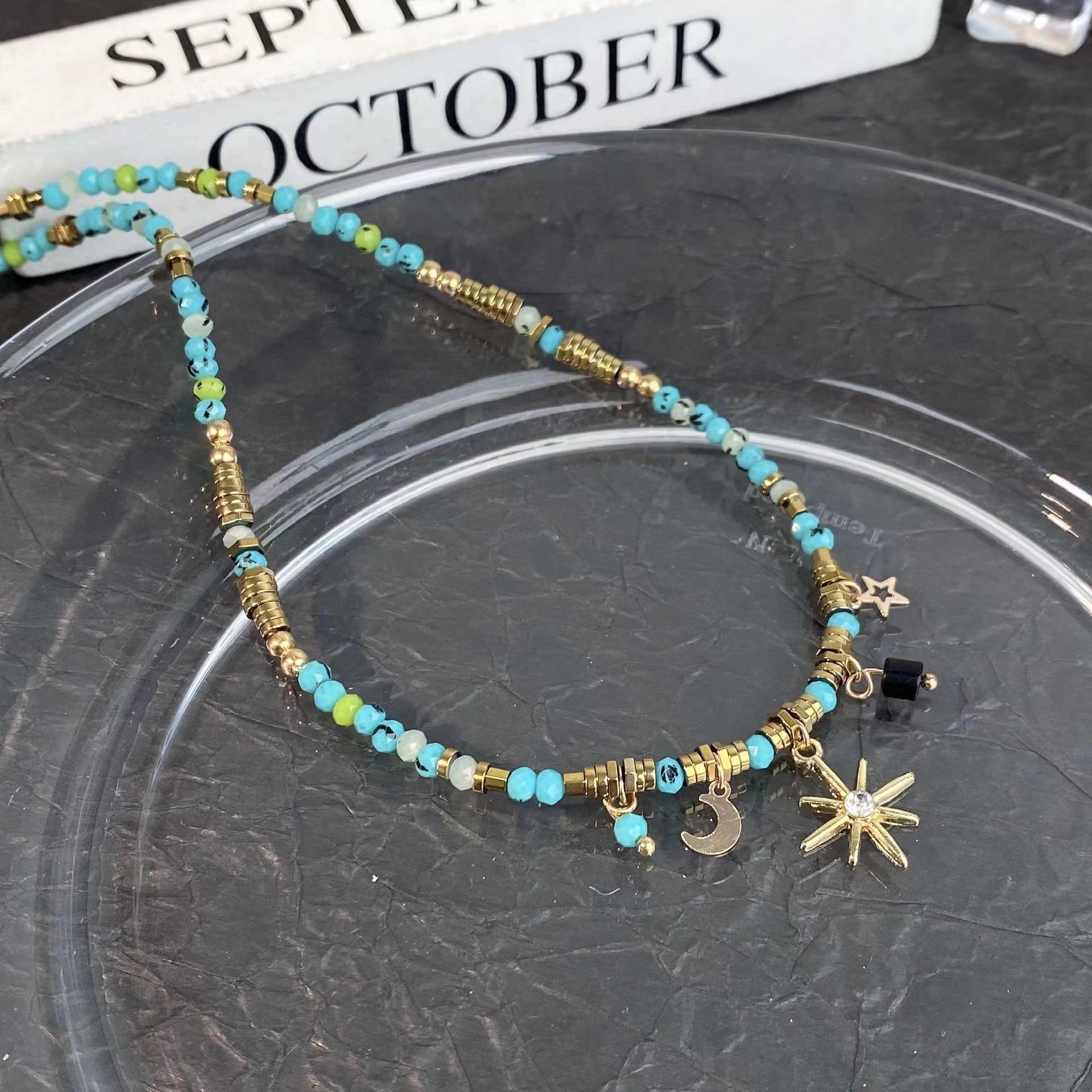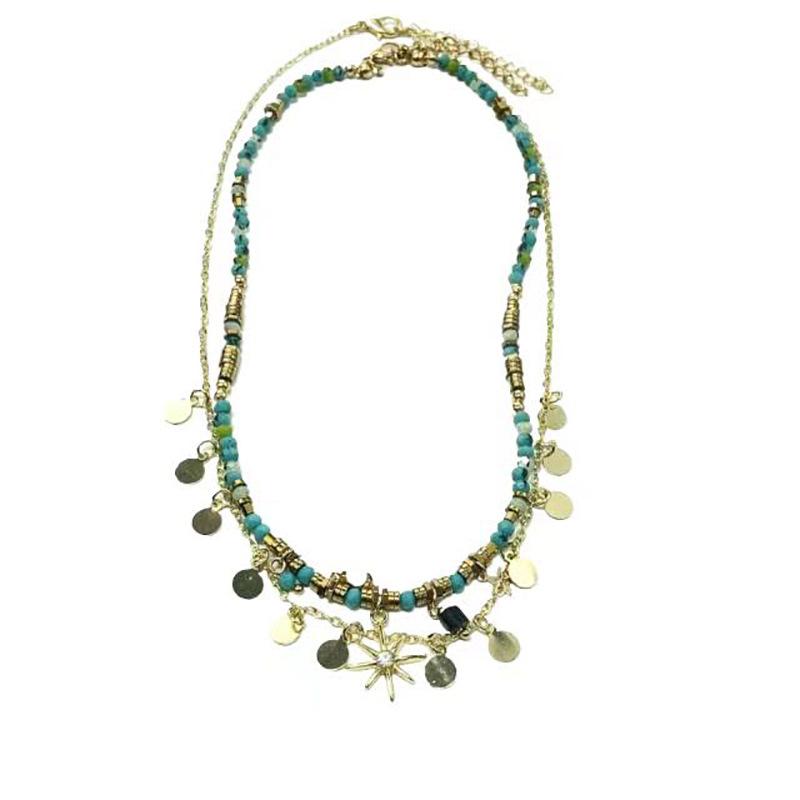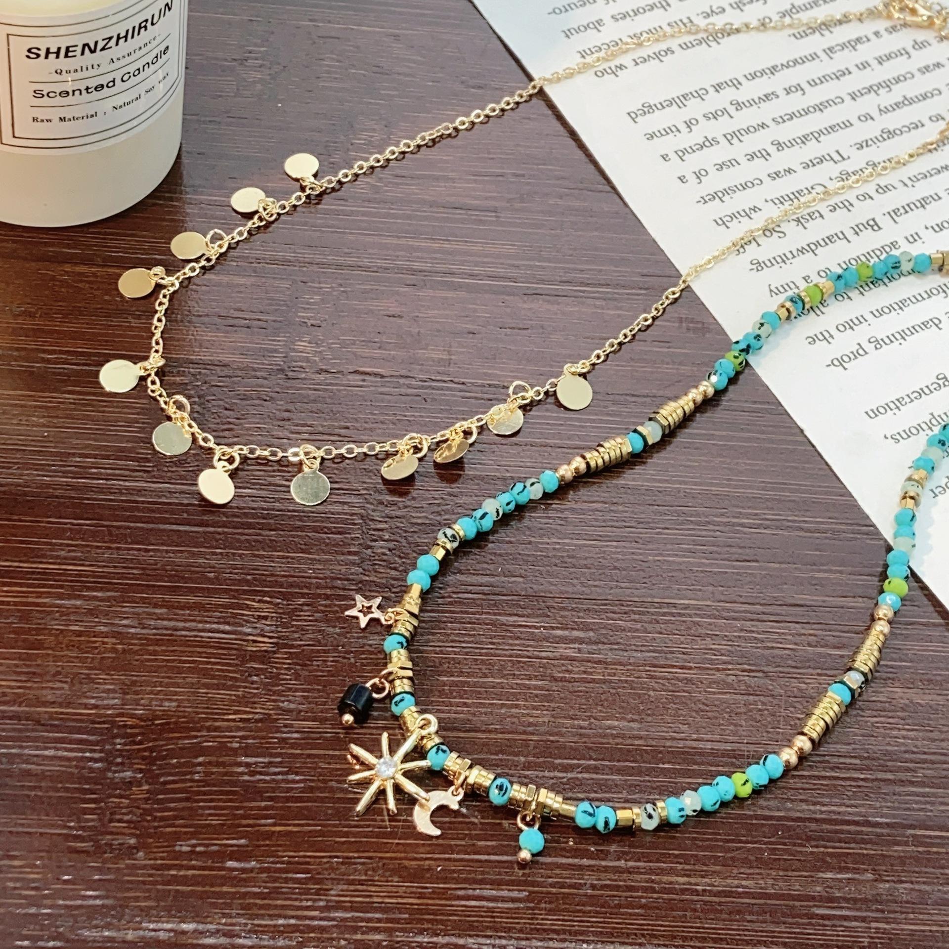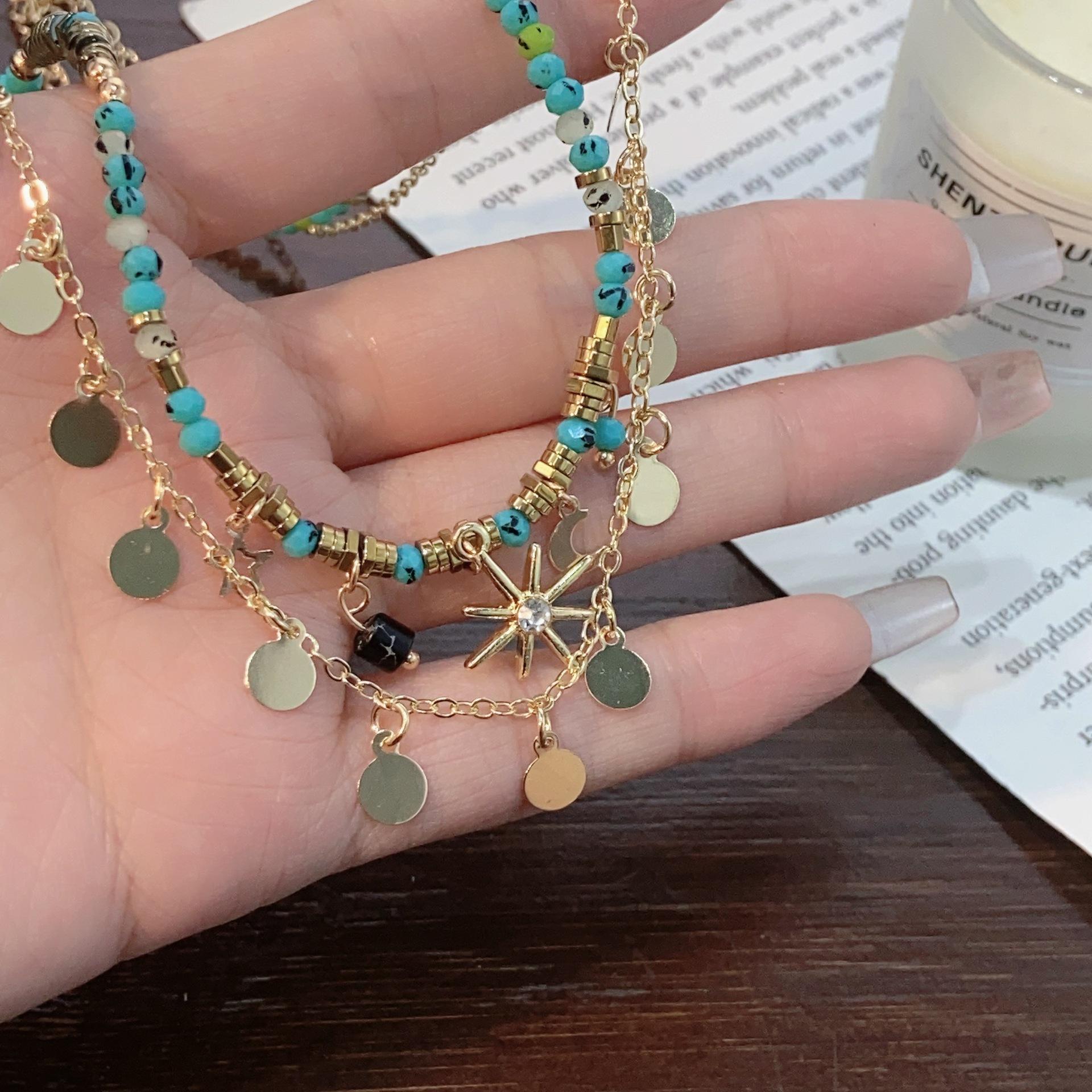 Beaded necklace-blue, disc necklace, Beaded necklace-coffee, Tassel shell necklace, Beaded bracelet-green, Beaded bracelet-coffee