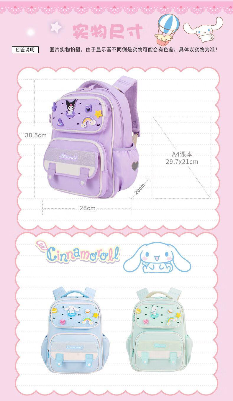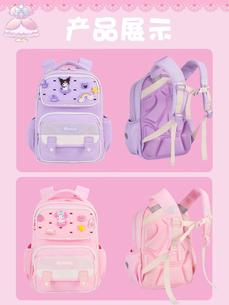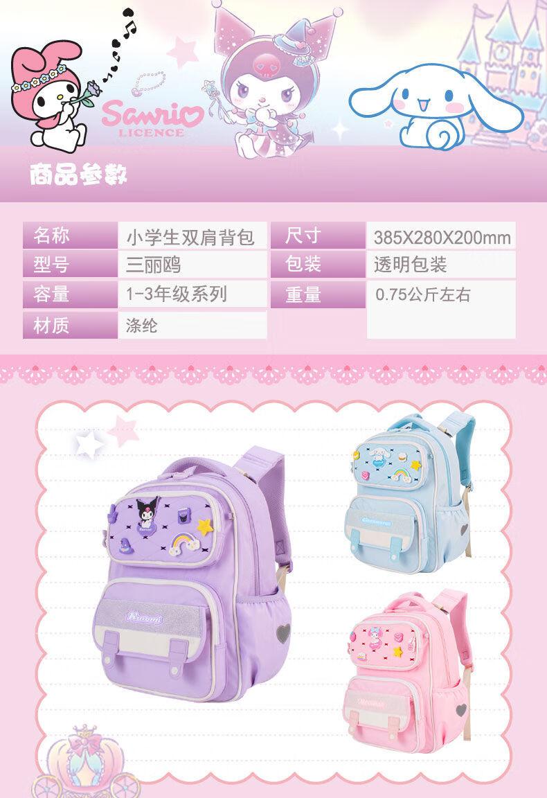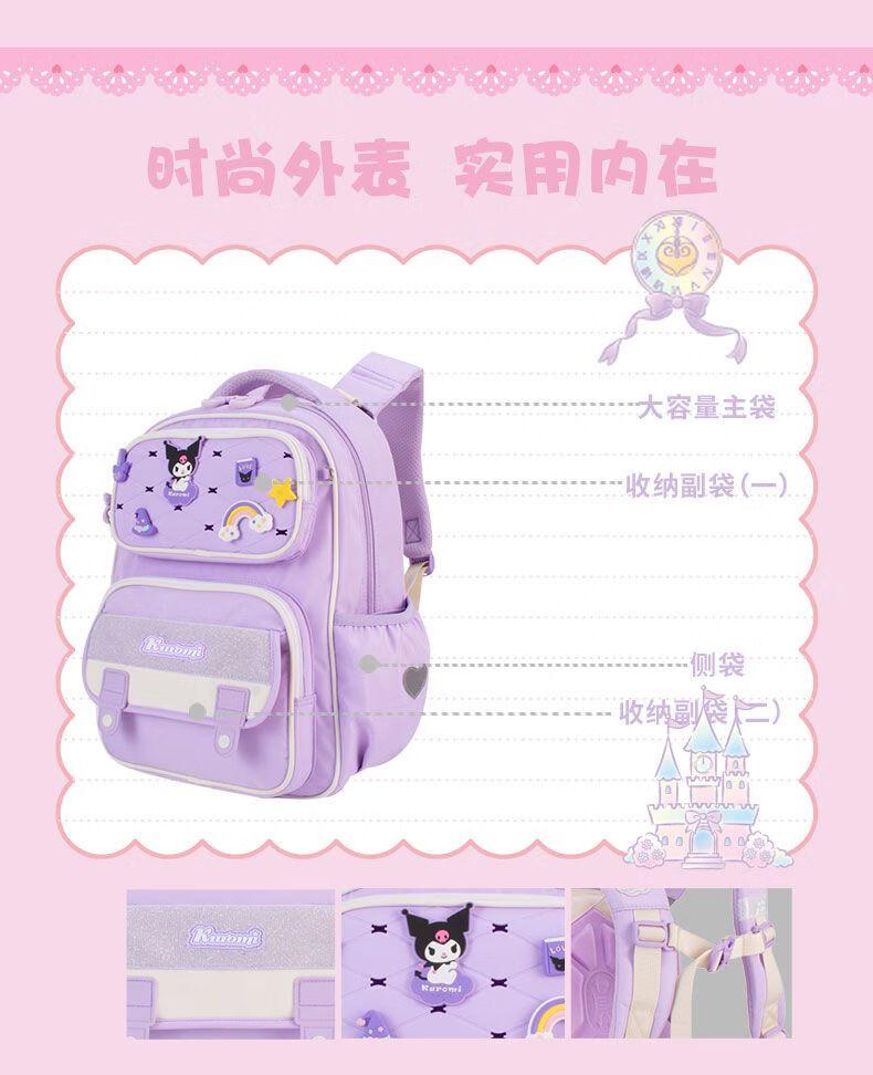 Mochila escolar Sanrio Kulomi para estudiantes de primaria con protección de cresta, gran capacidad, melodía, primer grado, dos, tres, sen, para niñas.